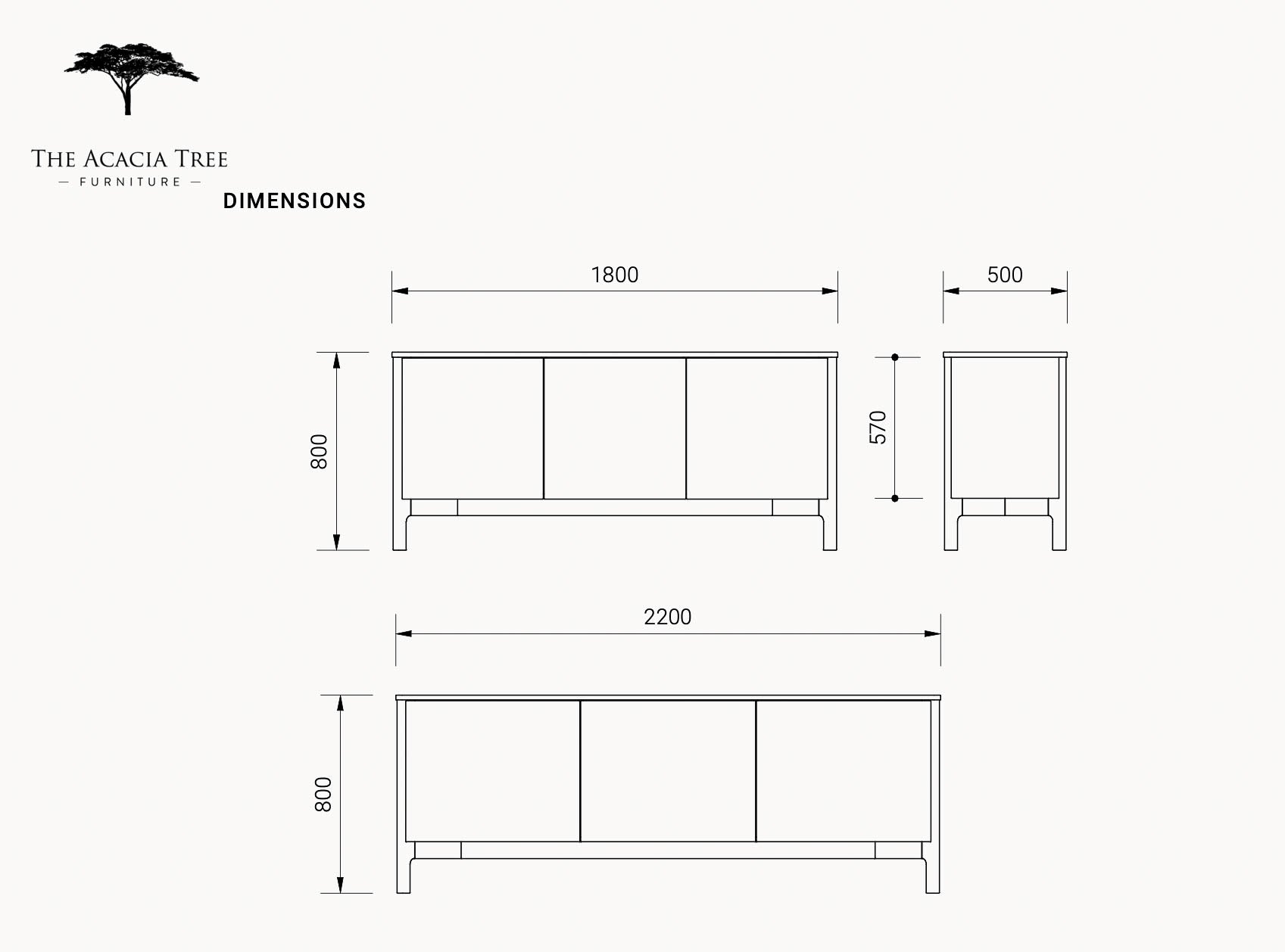 2.2m Buffet - 2200 x 500 x 800 (4 cupboards pictured)