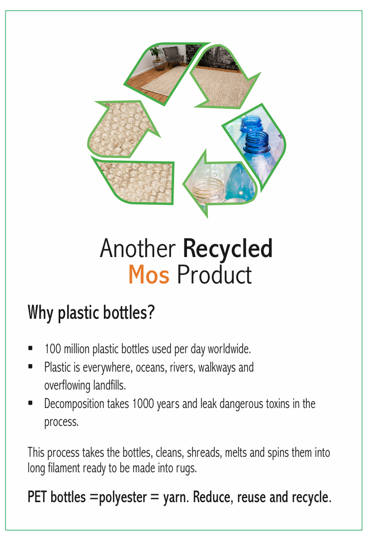 Crafted from recycled PET yarn, the Avenue collection offers the luxurious look and feel of wool with an eco-conscious heart. Each rug is hand-woven in India from recycled bottles, boasting a 7mm pile height and a beautifully textured weave.