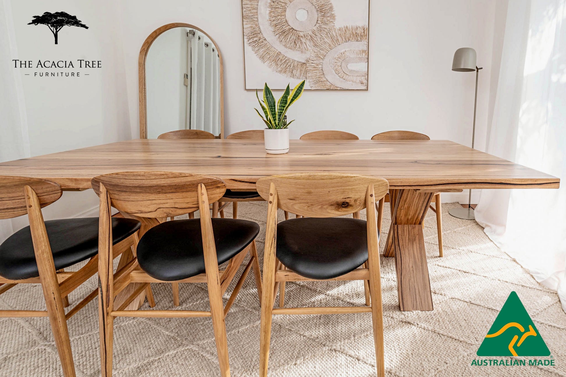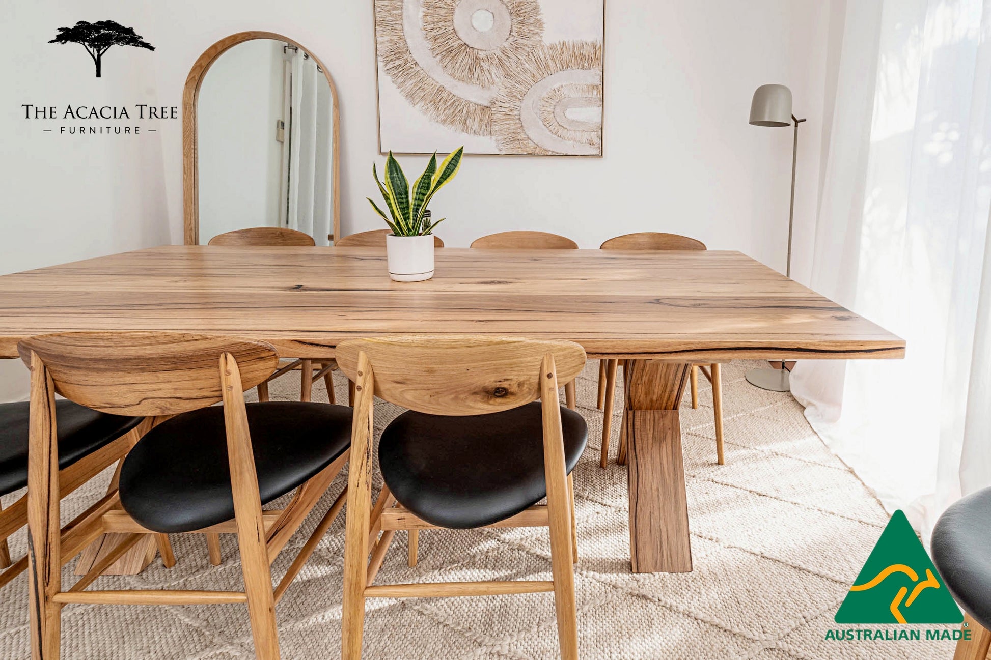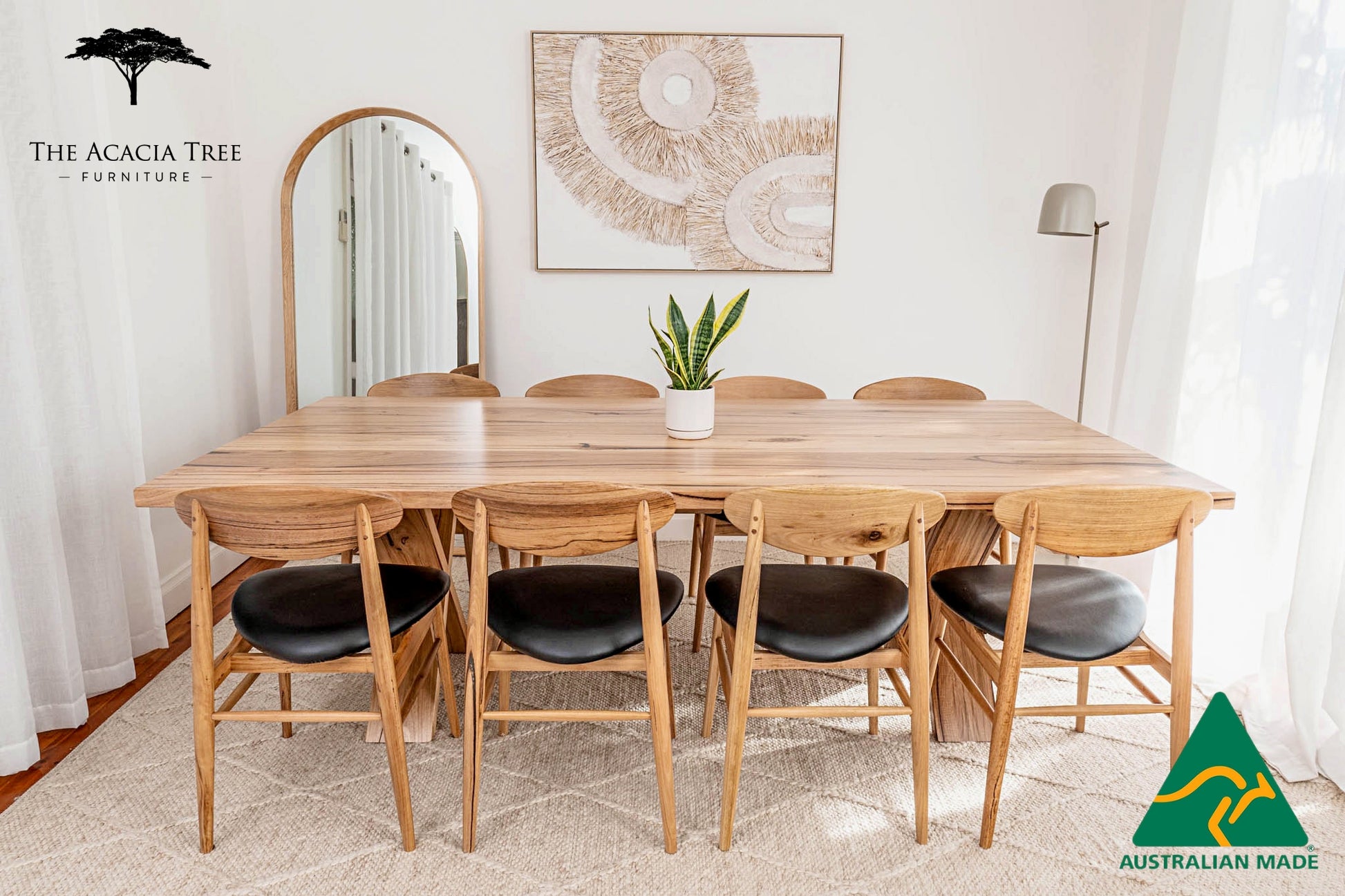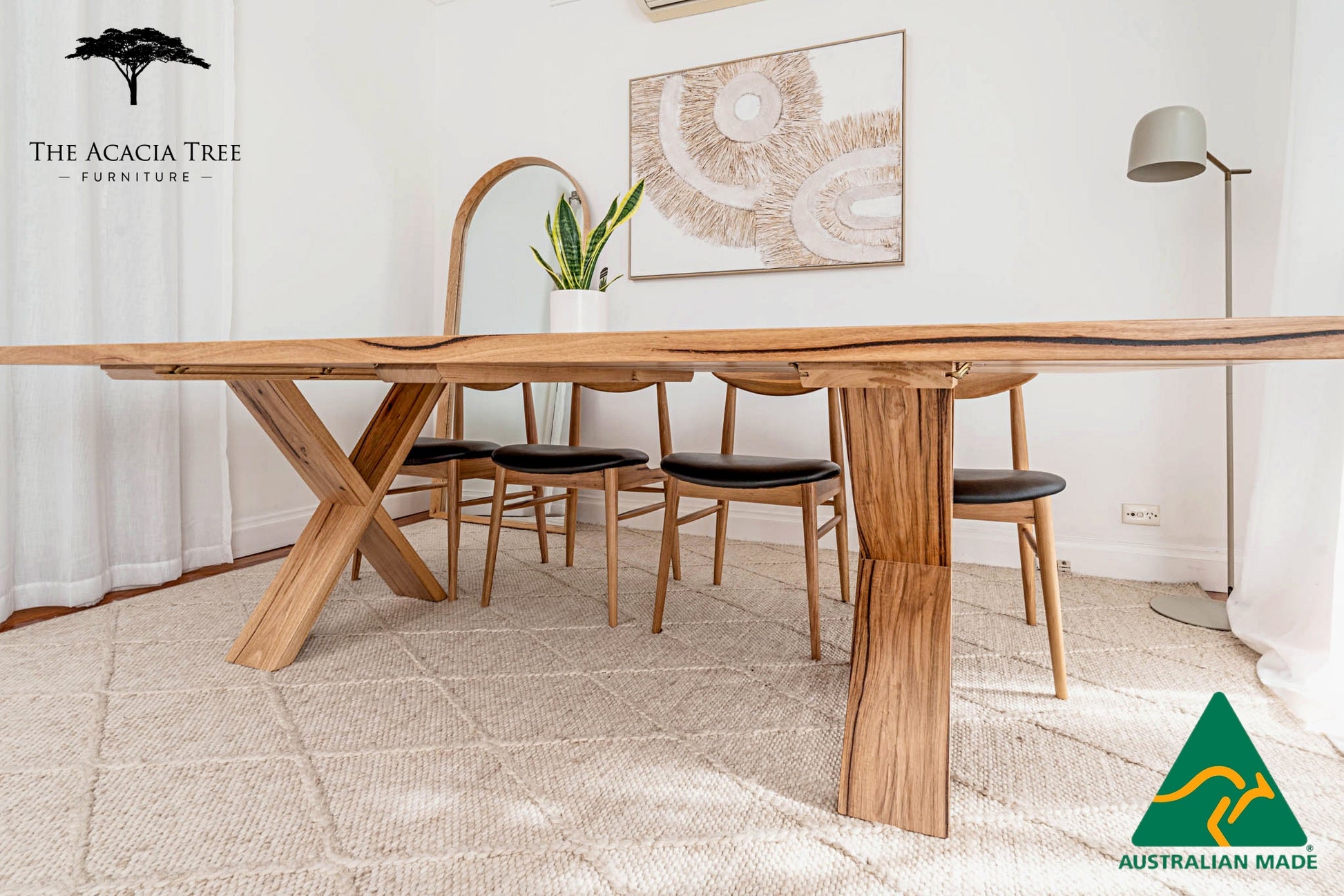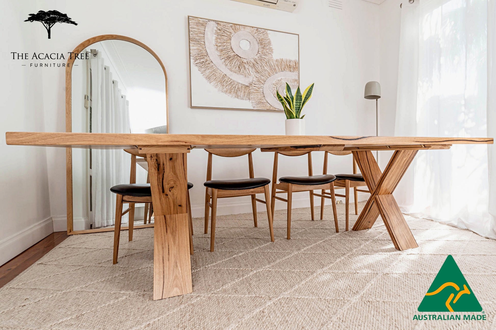 Welcome to the AXL Dining Table, an Australian masterpiece blending substance and style. Featuring a 40mm solid top and bold X legs, it offers timeless design and versatile seating. Custom-made in Australia from 100% solid Australian hardwoods, this table is a testament to enduring quality. Experience Australian craftsmanship and elevate your dining space with the AXL Dining Table, a piece destined to become a cherished part of your home for generations.