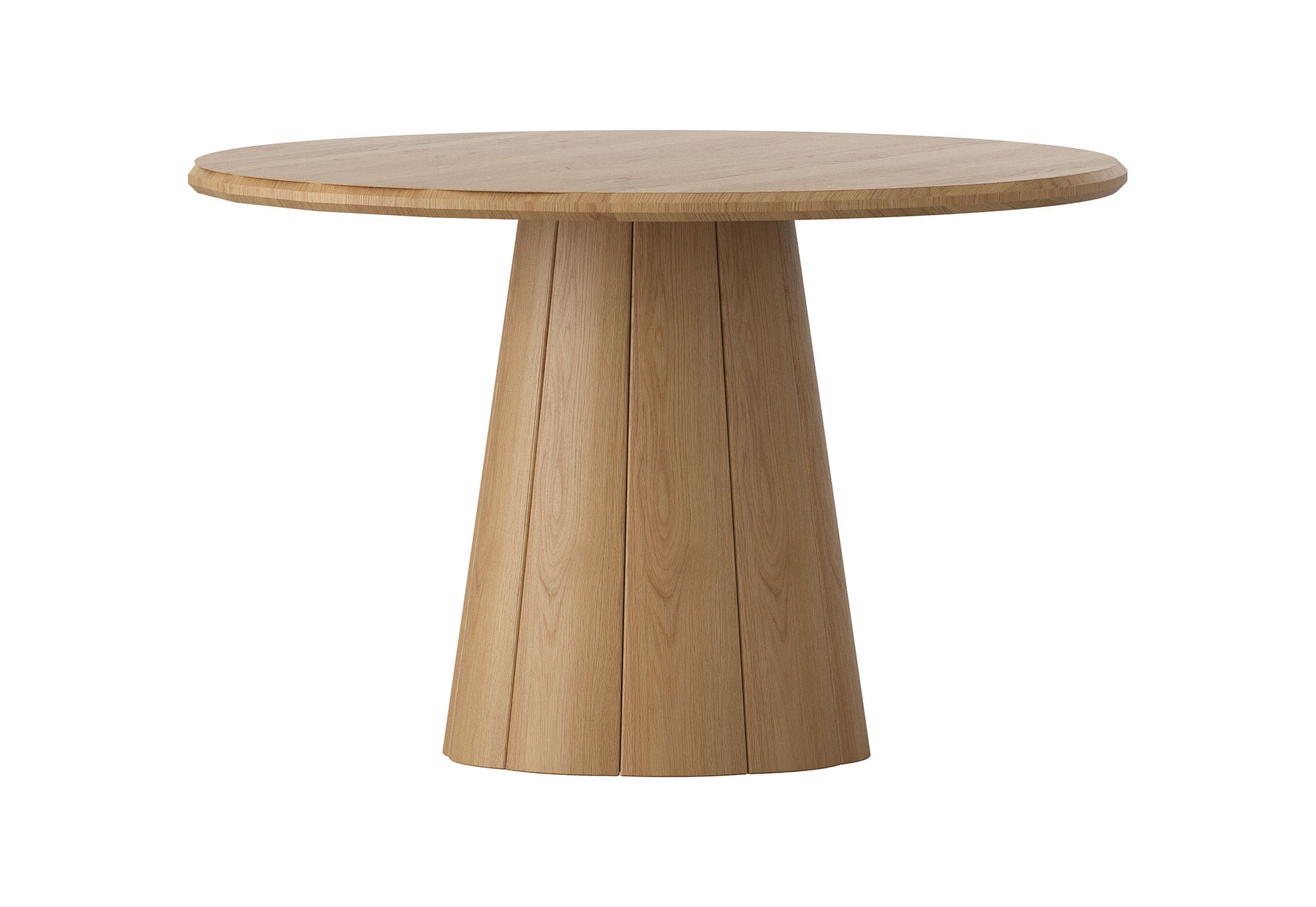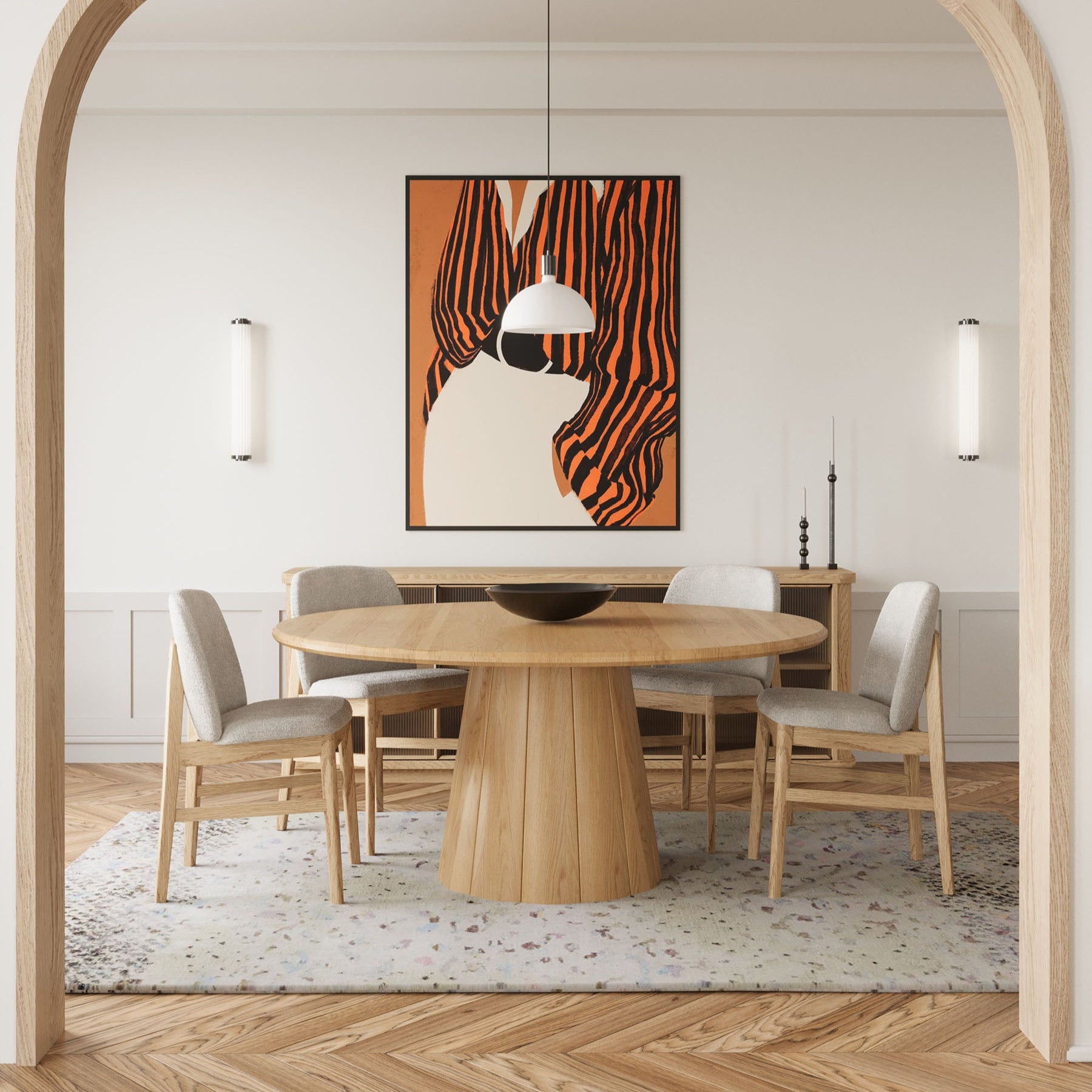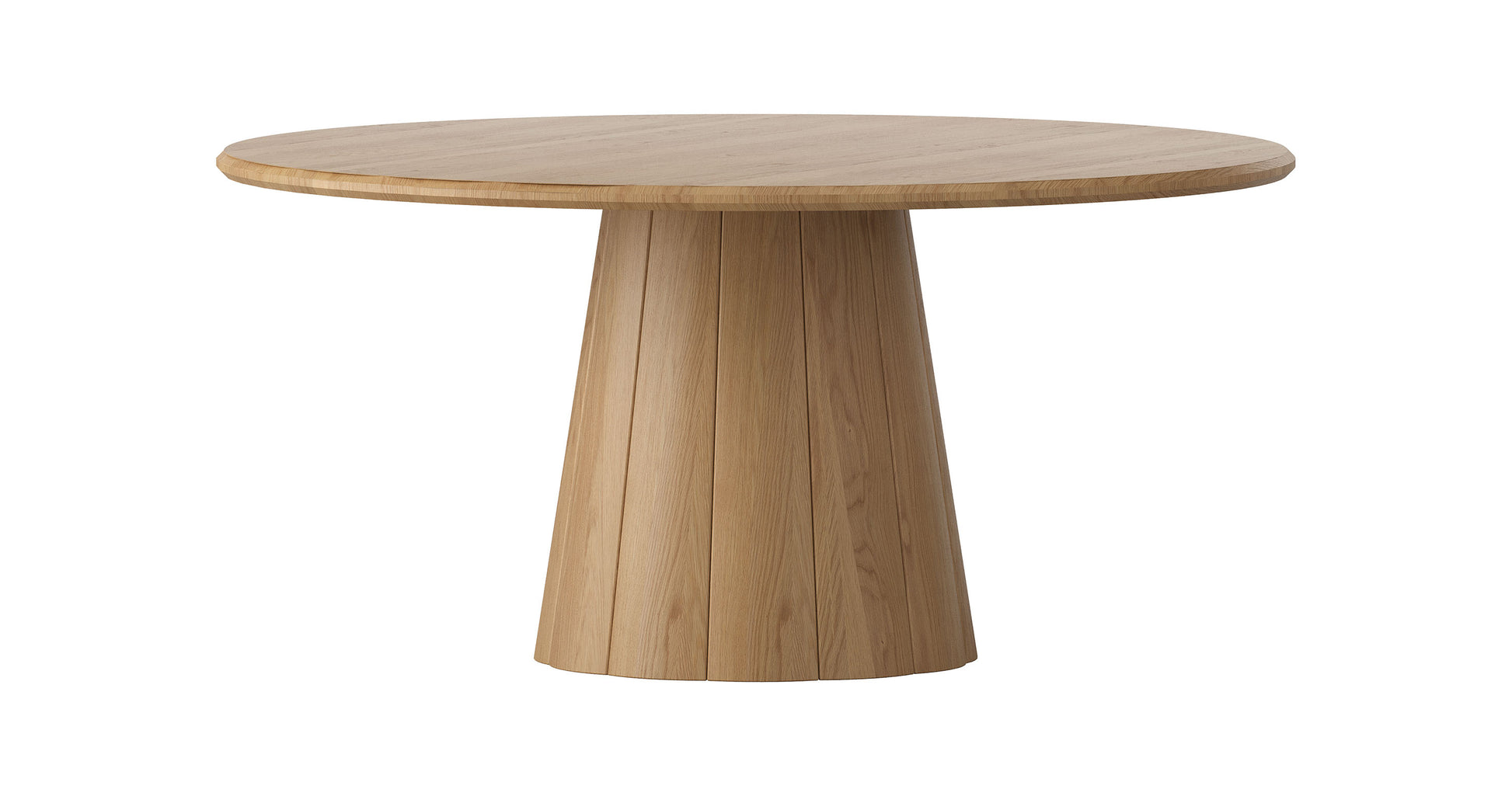 The Blossom Dining Range is a refined celebration of craftsmanship and contemporary elegance. Featuring a petal-shaped solid timber base with domed panels, this round dining table embodies minimal sophistication. Crafted from American oak with a natural finish, its veneer tabletop with solid timber edge capping enhances durability and timeless appeal, making it a striking yet versatile centrepiece for any dining space.