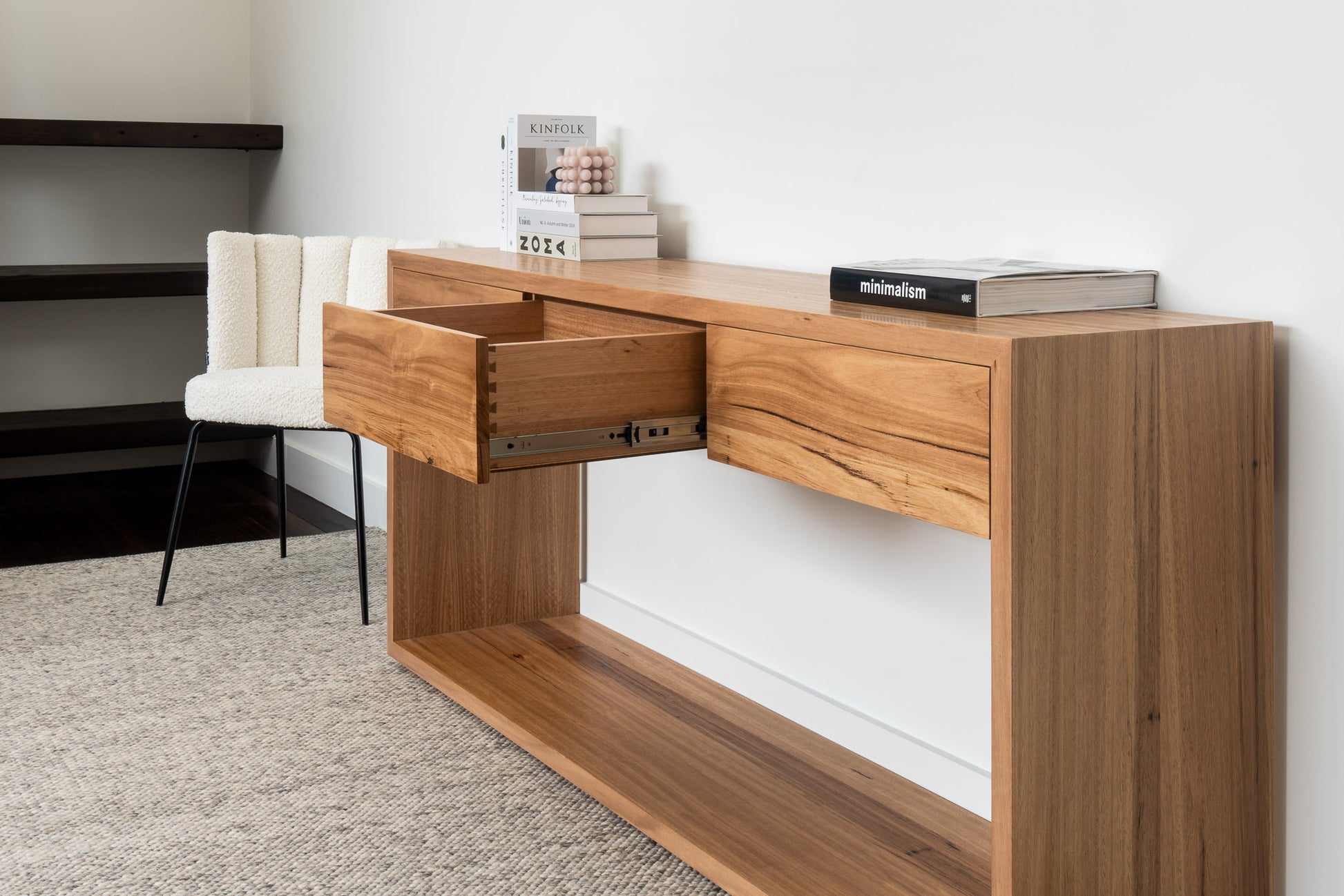 Discover the epitome of bespoke luxury with our Cape town console table, meticulously handcrafted in Australia just for you. Featuring a bold 33mm solid border surround on each Cape town unit. Tailor every detail to your taste – design, size, timber, and finish. Immerse yourself in the highest A+ Grade Australian Hardwood Timber, with options like Messmate, Vic Ash, Tasmanian Oak, and more. Your unique piece, custom-made to perfection, ensures a lifetime of enjoyment. Elevate your space with craftsmanship that speaks volumes – your vision, our creation