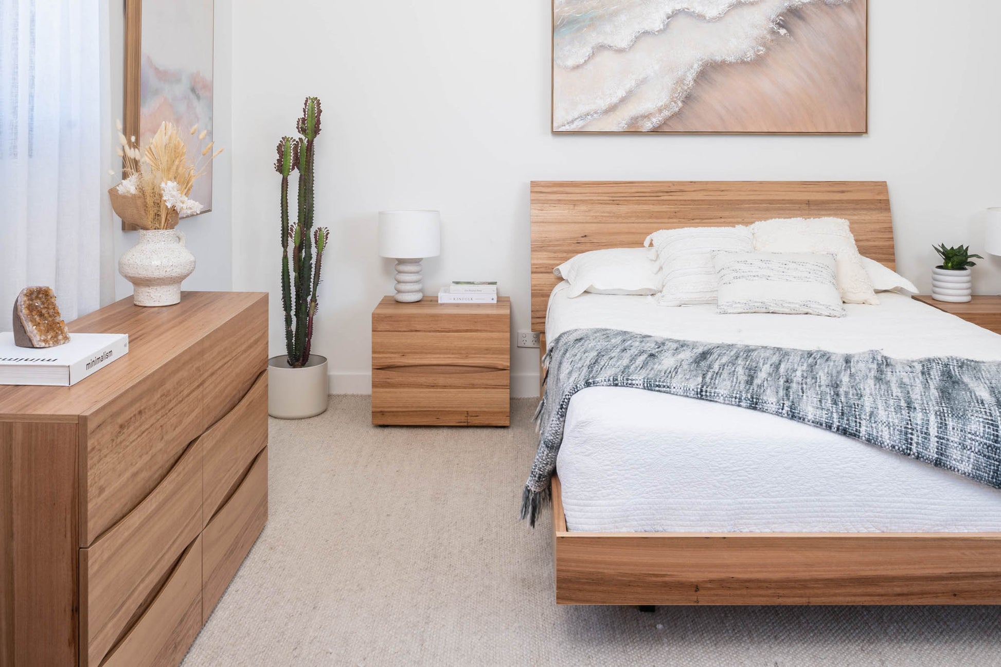 Discover the Citrine Bedroom Range, proudly 100% Australian Made. Expertly crafted in Melbourne, this collection features beautiful Australian Wormy Chestnut, ensuring each piece showcases exceptional durability and timeless beauty. The perfect blend of nature and innovation with our exquisitely designed bedroom furniture, including a uniquely curved and comfortable headboard for an added touch of elegance.