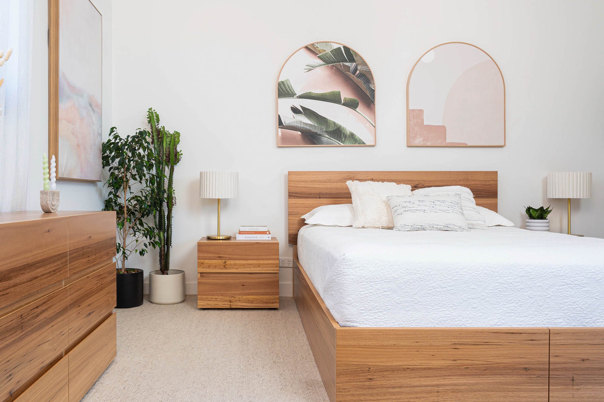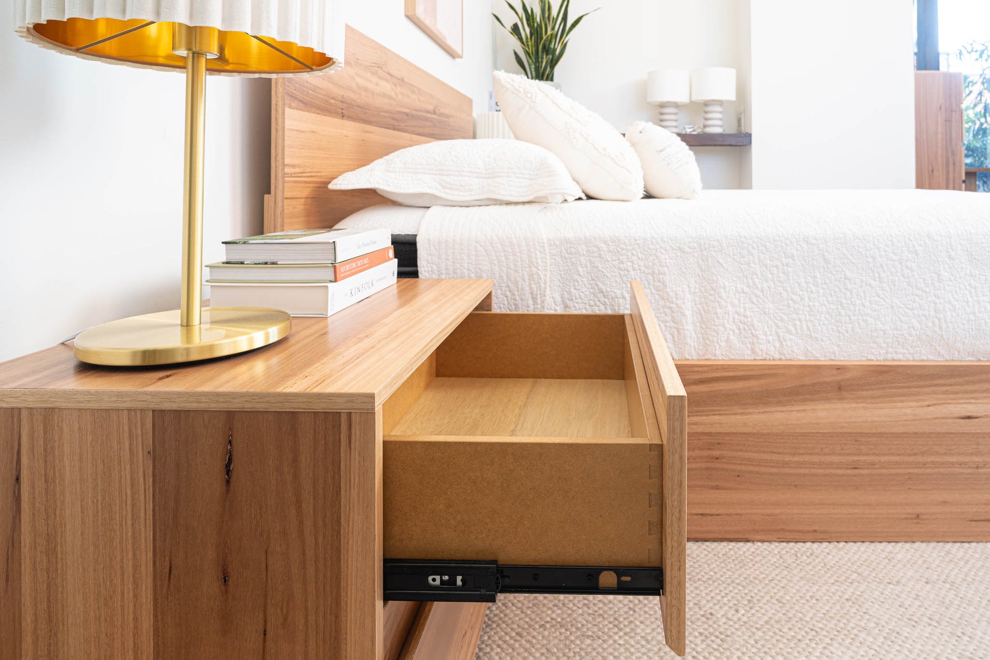 Explore the Dusk Bedroom Range, proudly 100% Australian Made and complete with matching case goods. Expertly crafted in Melbourne using stunning Australian Wormy Chestnut, this range features sleek straight-edge handles for a clean, contemporary finish. Pair it with the generously sized Dusk gas lift storage bed for the ultimate blend of style and practicality. With its refined design and ample storage, Dusk brings modern simplicity and everyday functionality to your bedroom.