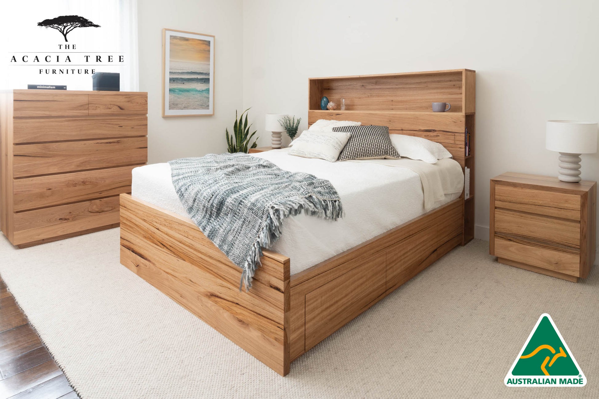 York Bookcase Headboard 4 Drawer Bed Frame - Made in Australia