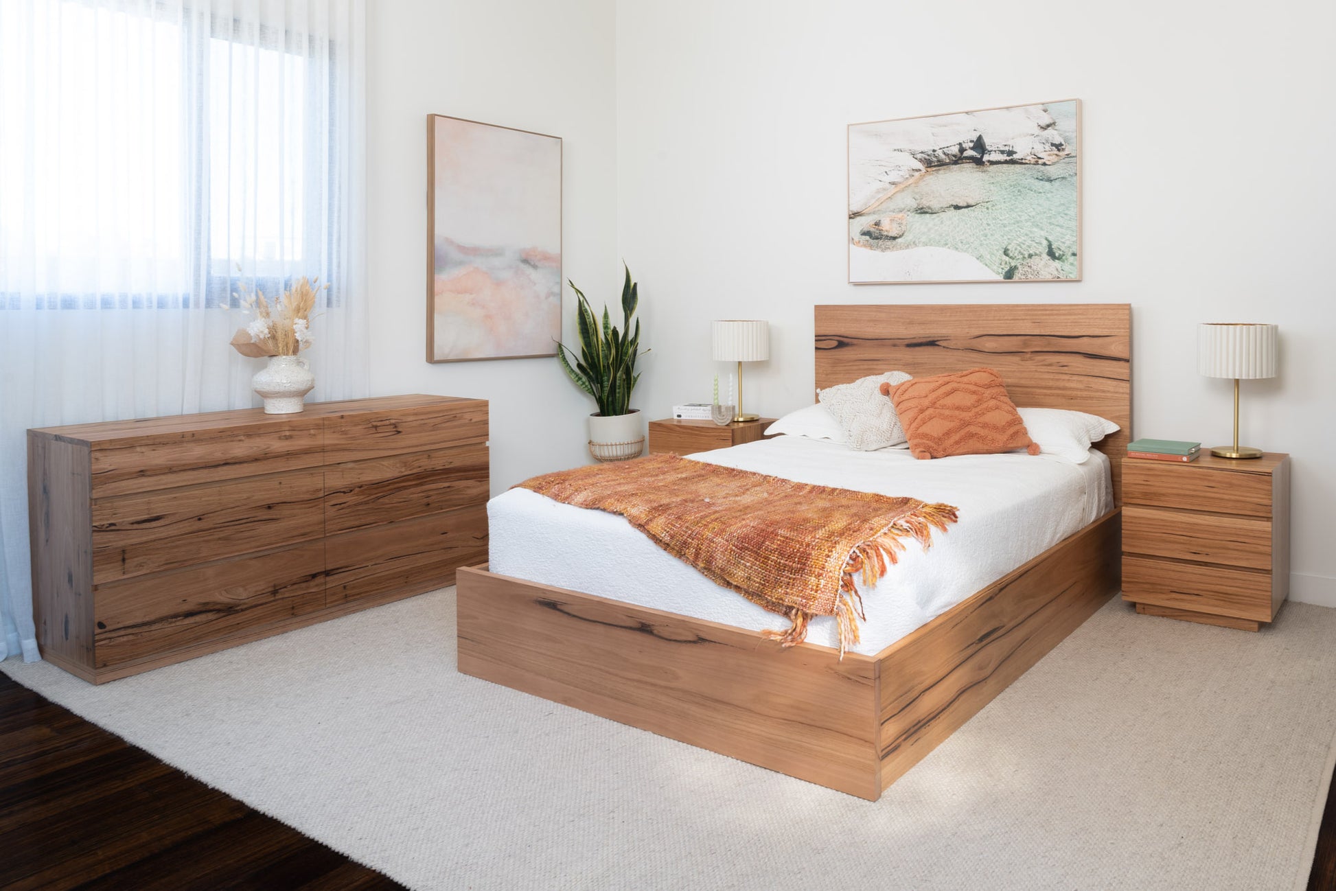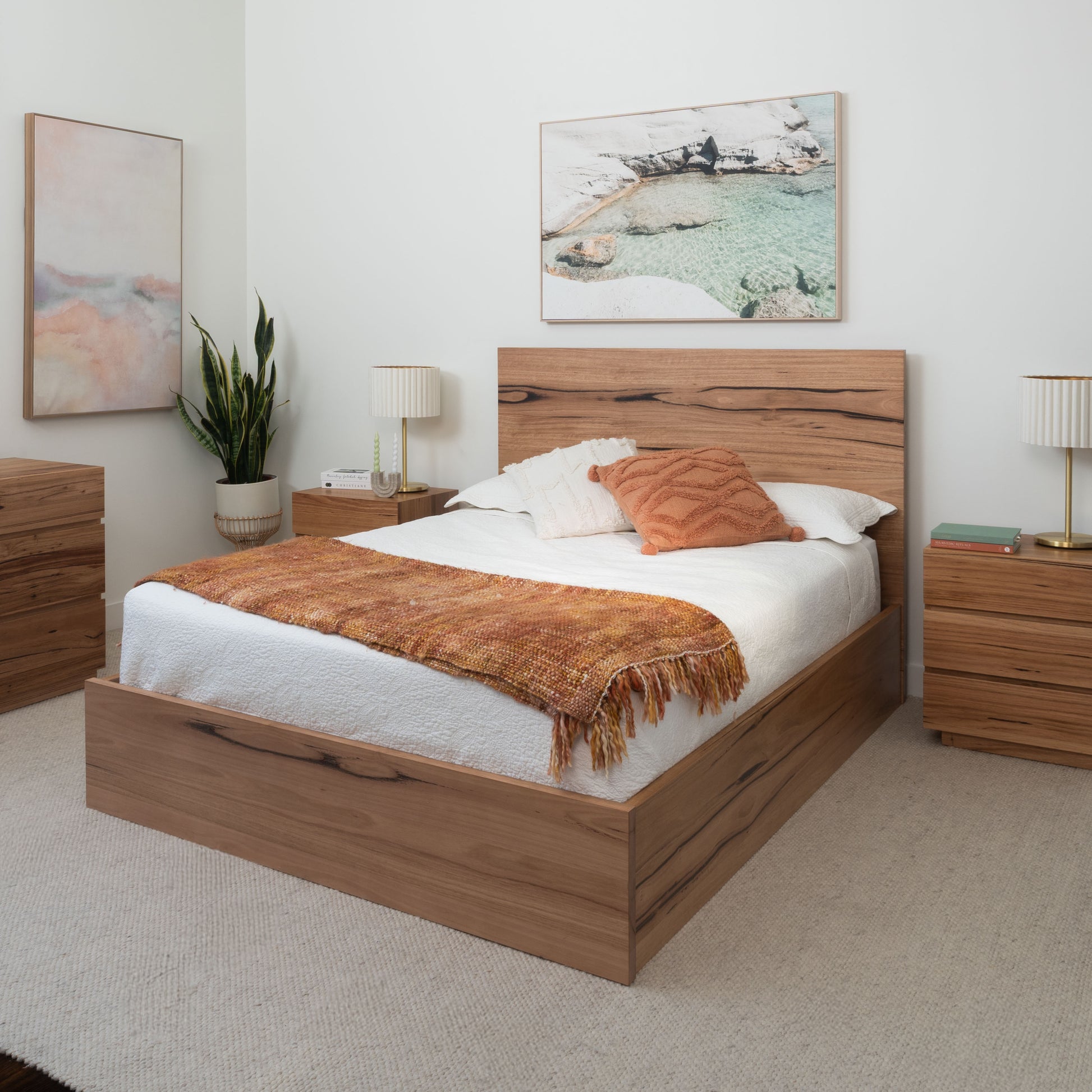 Matching bedroom furniture available. Photographed with the Noosa 6 drawer dresser & Noosa 3 Drawer Bedside Table