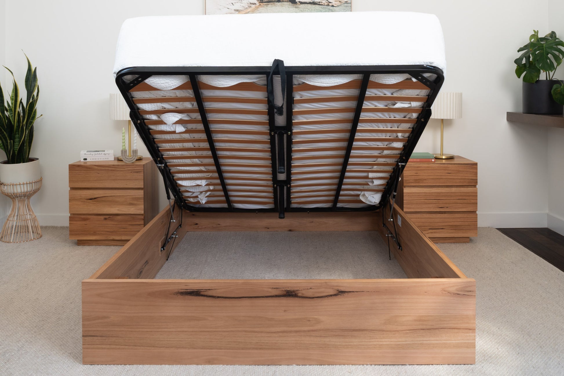 The York Gas Lift Bed combines the timeless appeal of solid Australian hardwood timber with the added convenience of hidden storage. Effortlessly access ample under-bed space with the smooth gas lift mechanism – perfect for keeping your bedroom organised and clutter-free. Built with the same exceptional craftsmanship and enduring quality as the rest of our York range, this Australian-Made bed frame is designed to elevate both your space and your lifestyle.
