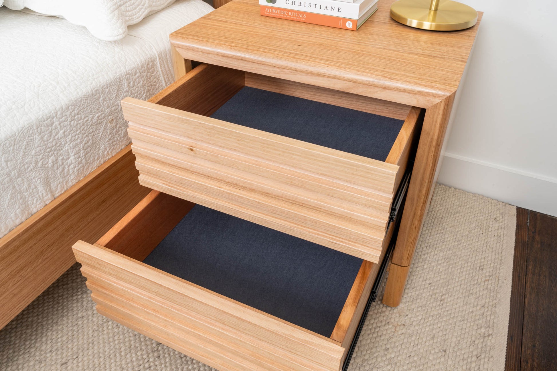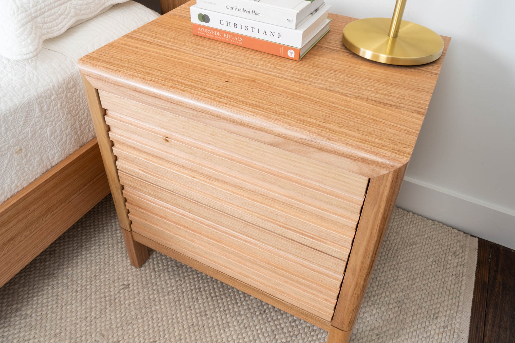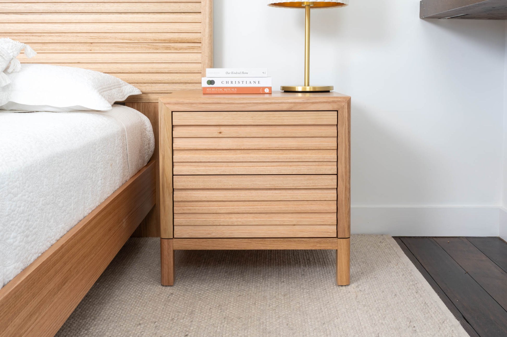 Experience the timeless beauty and quality of our Australian-Made Luna bedside table. Featuring elegantly curved edges and sophisticated lined panel detailing, meticulously crafted from solid Tasmanian Oak. With six stunning stain options to choose from, you can tailor this classic piece to match your personal style and home decor. Elevate your bedroom space with the enduring elegance of the Luna, a true masterpiece of Australian craftsmanship.