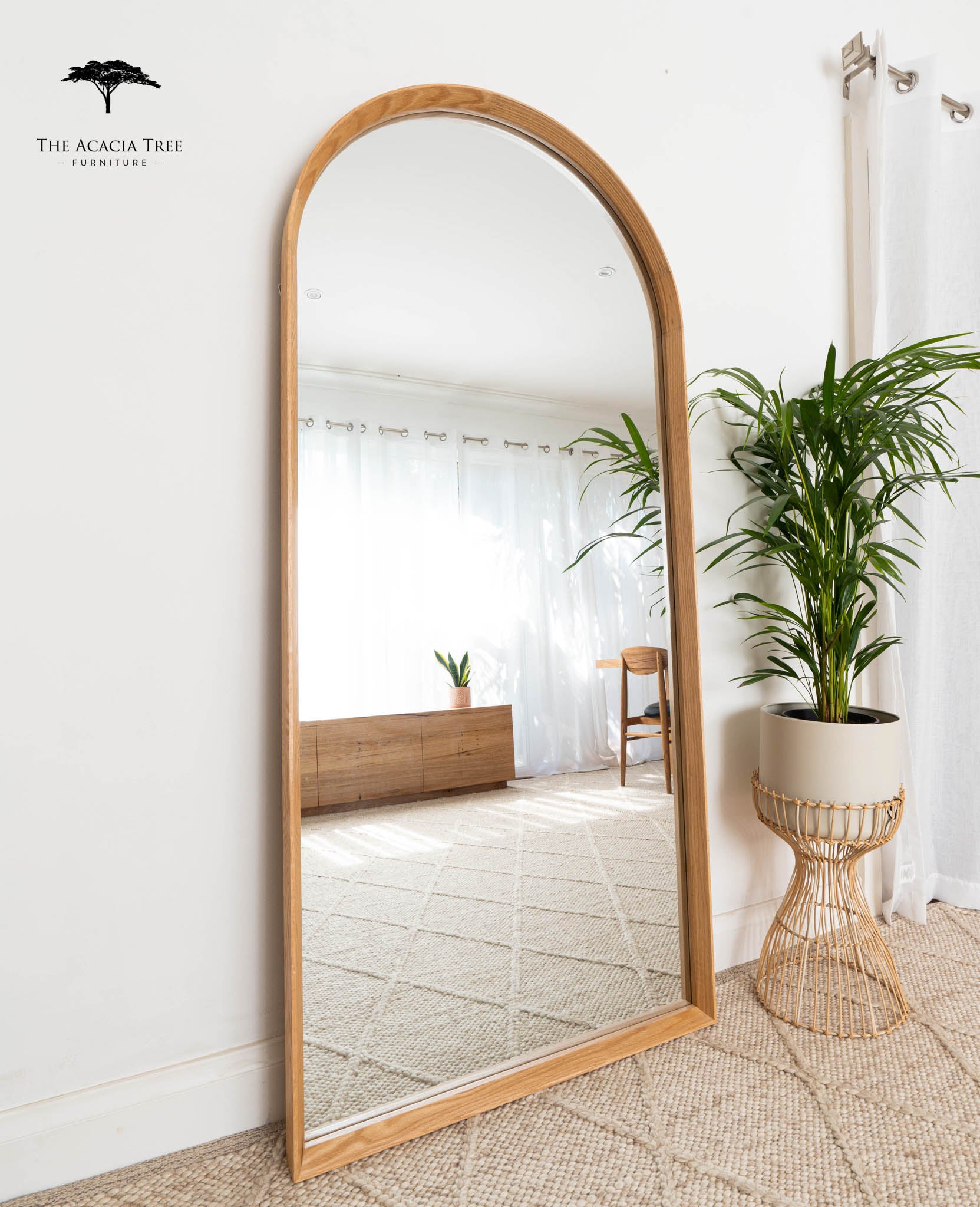 Elevate your space with the Ingrid Mirror, a full-length masterpiece crafted from high-quality Solid American Oak timber. Its elegant arch design adds a touch of sophistication, making it perfect as a leaner mirror against a wall or effortlessly hung with D-rings attached at the back. Choose from three exquisite colours—Black, Natural, or White—to seamlessly integrate this stylish and versatile mirror into your decor. Redefine your reflection with the Ingrid Mirror, where quality craftsmanship meets contemporary design in perfect harmony