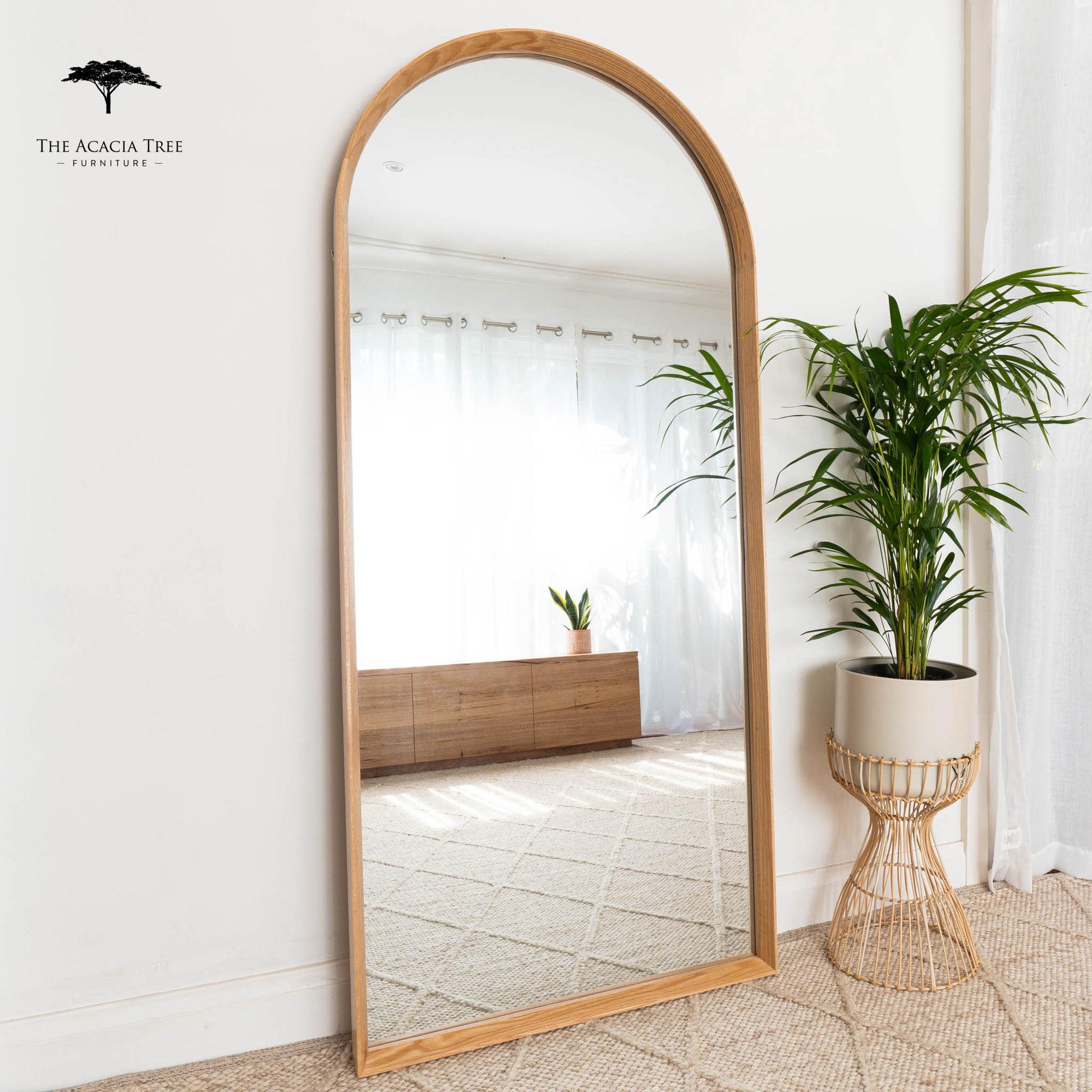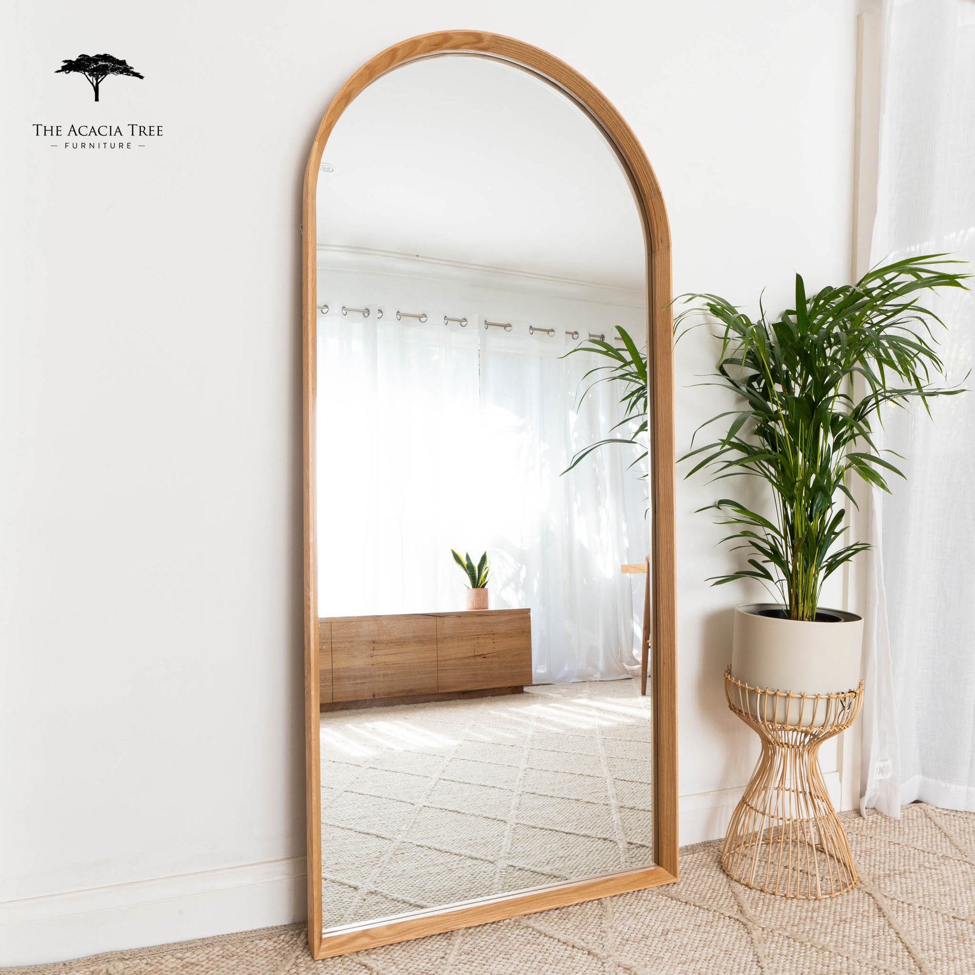 Ingrid Natural Solid American Oak Full Length Arch Mirror