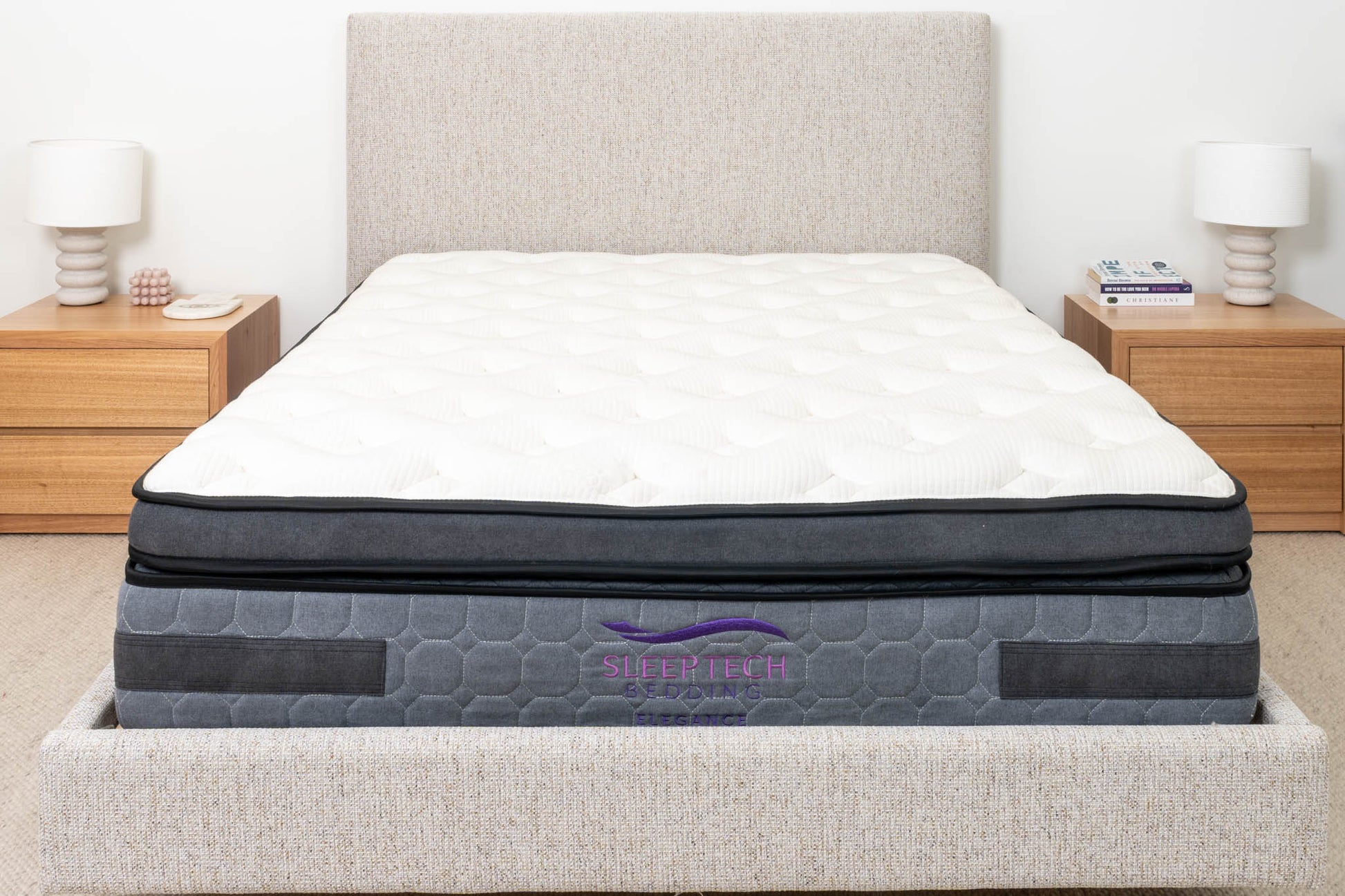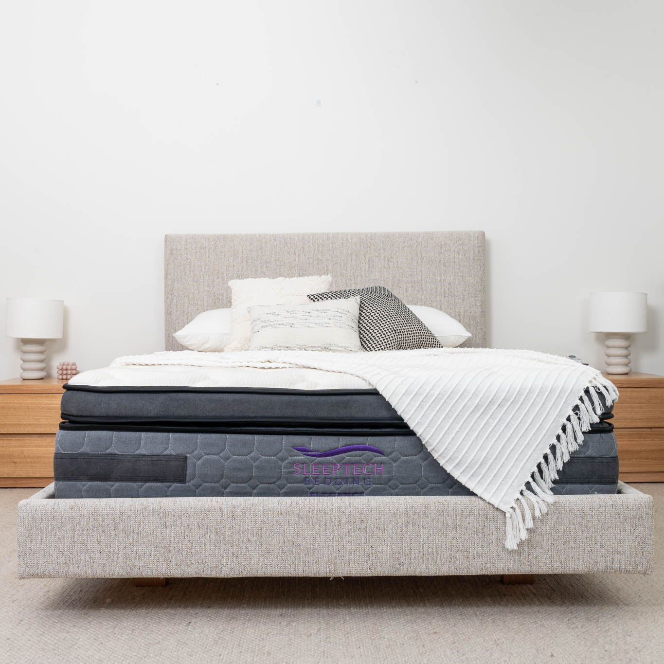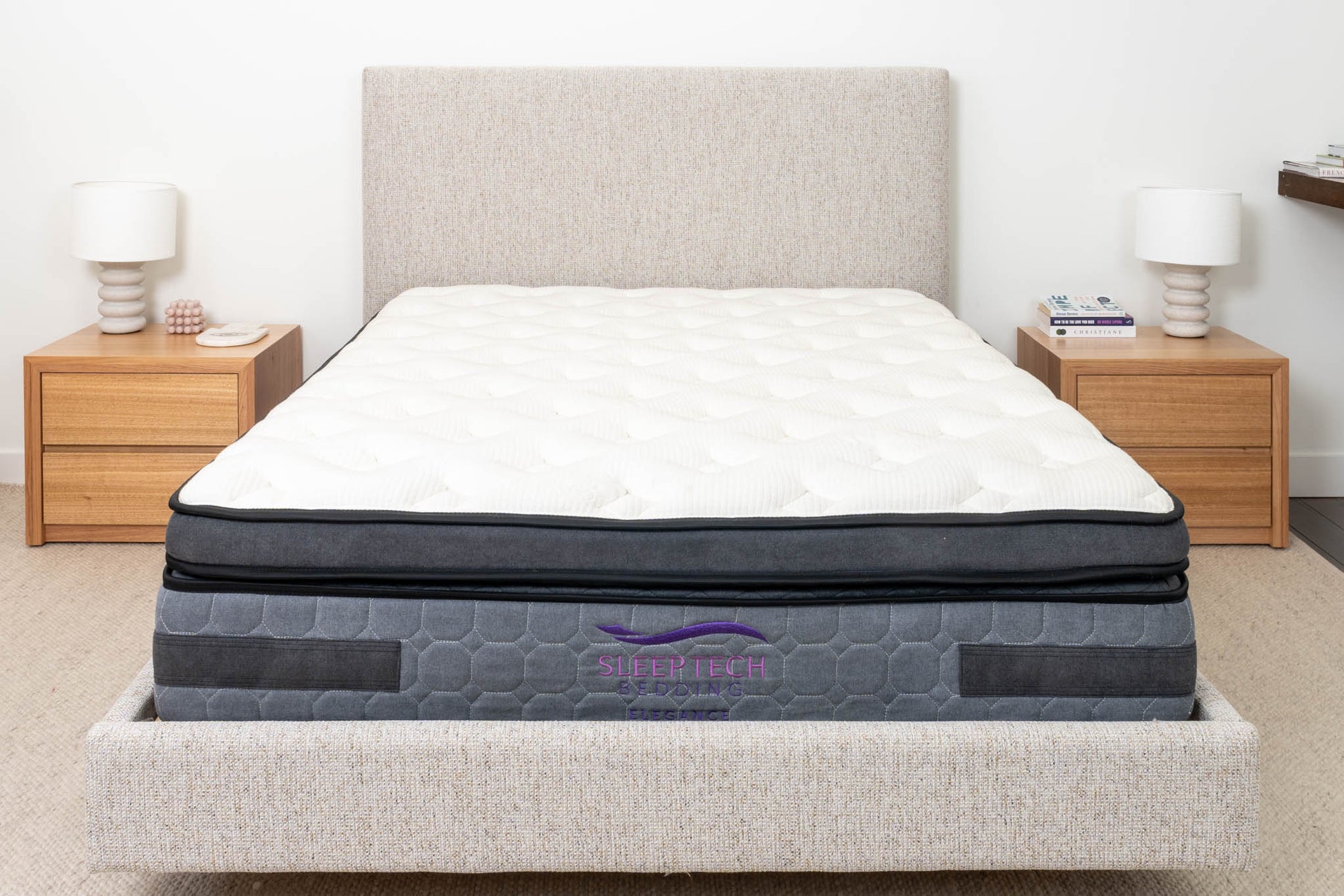 The SleepTech Elegance Mattress delivers premium comfort at a budget-friendly price. Featuring BodyFlex™ Micro Coils, gel memory foam, and a 7-zone pocket coil system, it offers breathable support and reduced motion transfer. Finished with a soft stretch-knit cover and edge support for all-night comfort.