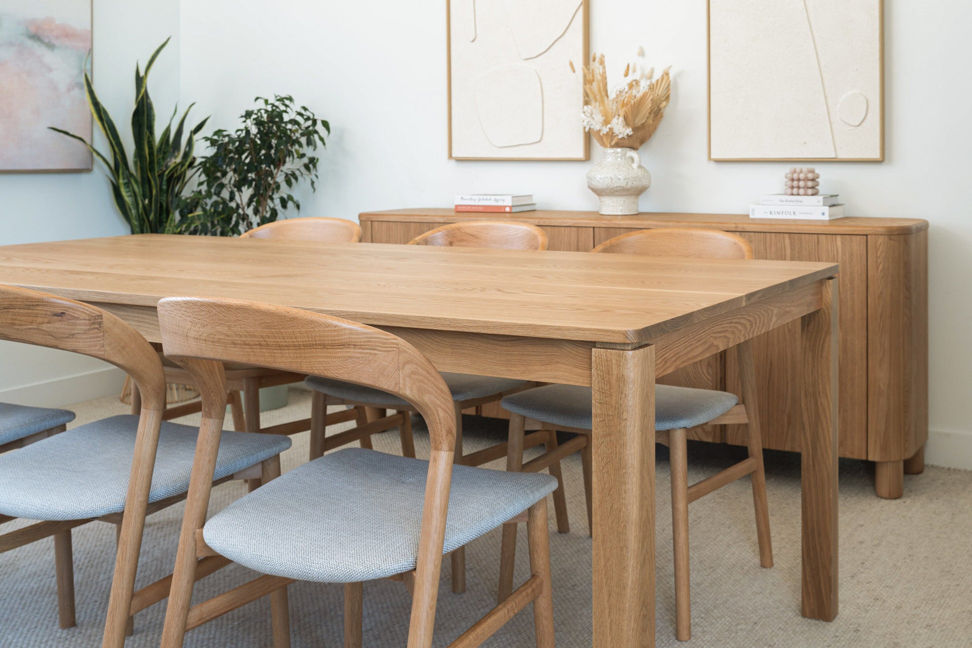 Introducing the Yakka™️ Dining Table, a stunning Australian-made creation that blends timeless craftsmanship with contemporary charm. Made from 100% American Oak, this table exudes natural beauty and durability with soft, rounded corners that bring an inviting touch to any dining space. The Yakka Dining Table is built to last and is as resilient as it is elegant, making it the perfect setting for cherished family moments and sophisticated gatherings alike