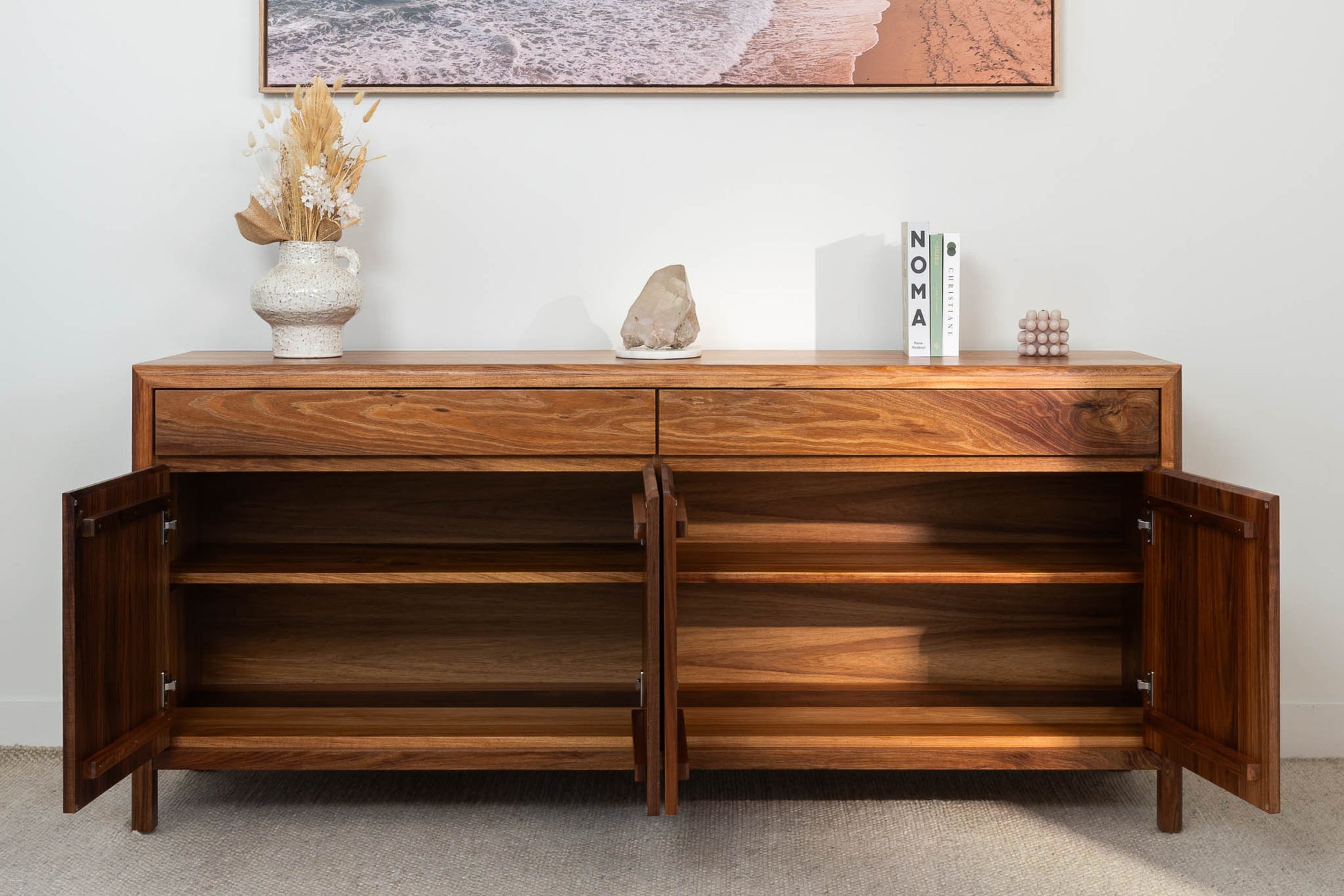 Experience the Yakka™ Heritage Buffet, meticulously crafted in Melbourne from solid Australian Blackwood. With its striking golden-brown grain and unique natural markings, every buffet is a statement of timeless beauty and enduring strength. Designed to offer generous storage while elevating your dining or living space, it combines functionality with artisan quality. Backed by a lifetime structural warranty and created with sustainably sourced timbers, eco-friendly packaging, and a tree planted with every purchase, the Yakka Heritage Buffet is as responsible as it is remarkable.