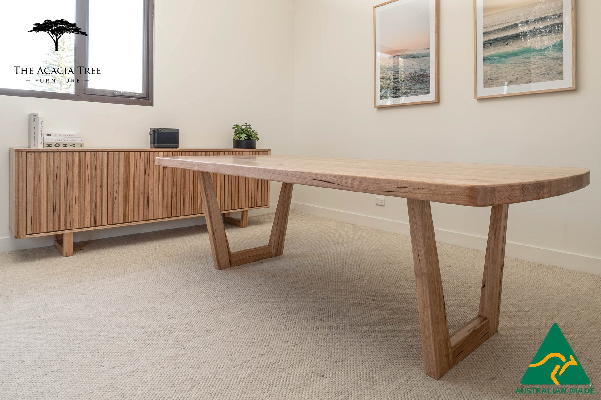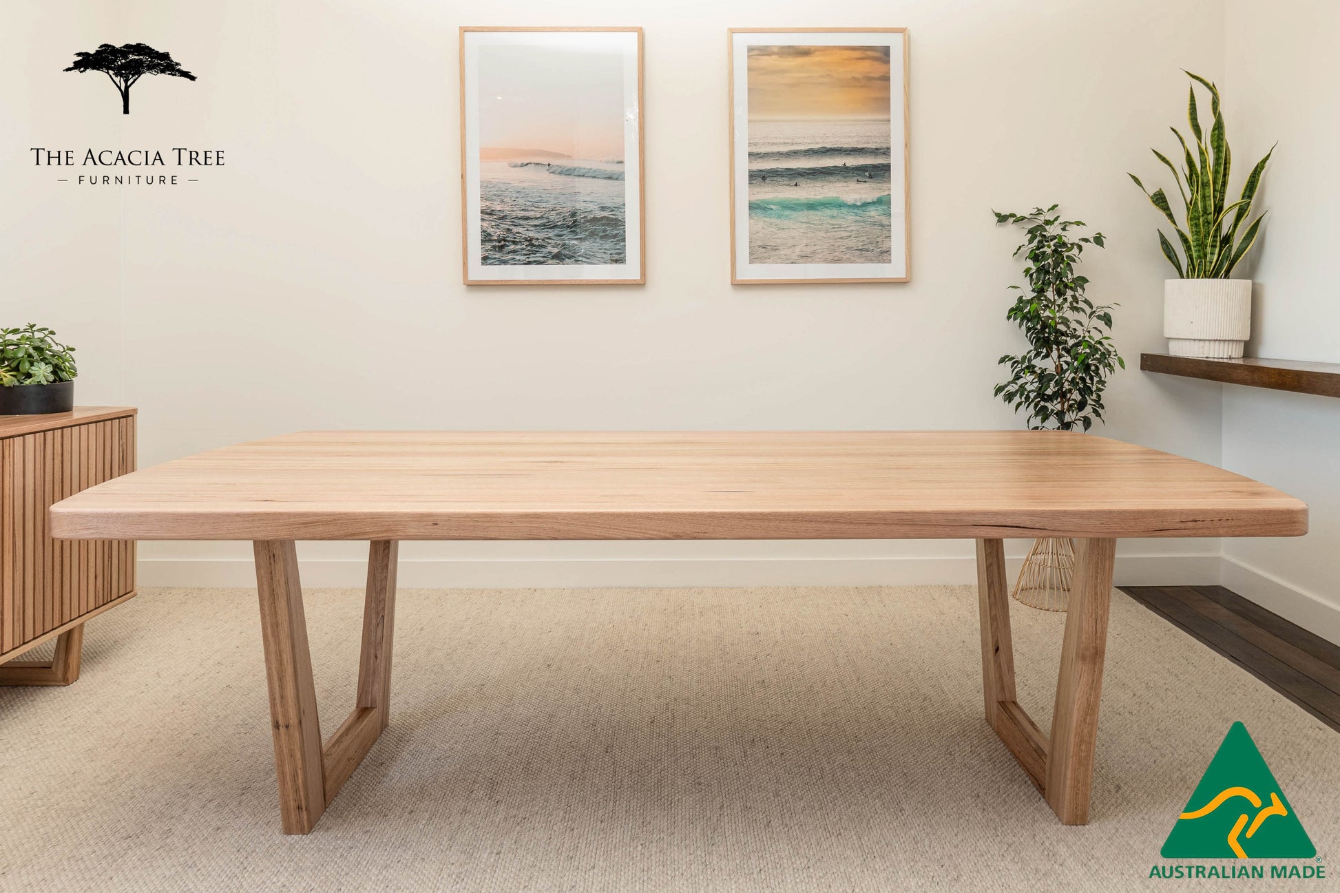 Introducing the Dion Dining Table, a masterpiece that marries exquisite design with exceptional craftsmanship. This striking piece features a substantial 60mm solid top and distinctive U legs with an elegant middle bar that perfectly complements the tabletop. Our Dion Dining Table can be made without the middle bar, offering you a design option for your ideal dining setting. Crafted here in Australia, every Dion table is a bespoke creation, hand-made with unwavering attention to detail.
