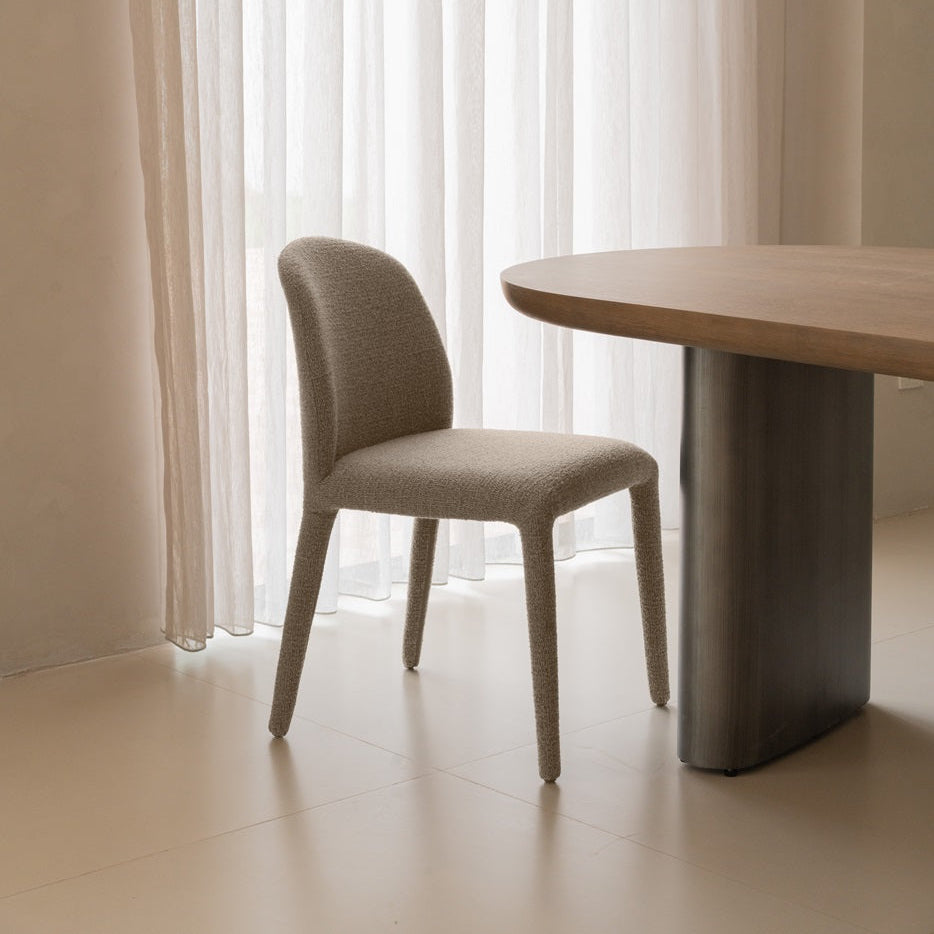 Wrapped in soft, textured Limestone or Terracotta fabric, the Hendry Chair offers a perfect blend of comfort and modern style for any space.
