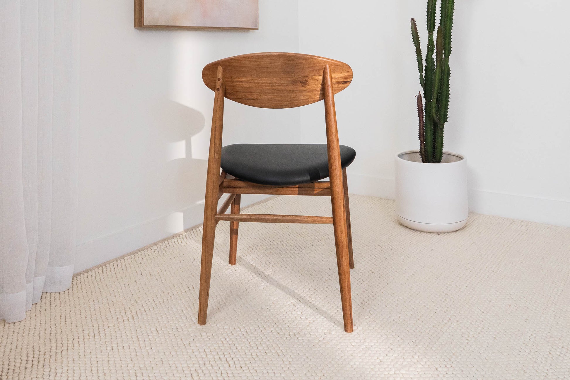 Lotus (Natural) Solid Blackbutt Dining Chair with Black PU Seat
