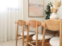 Elevate your dining experience with our Australian-made Osaka Dining Table. Its chunky 65mm thick top with a 32.5mm solid slab with a 32.5mm seamless lip exudes grandeur and durability, while the chunky U legs complement its aesthetics. What truly sets this table apart is the power of customisation – shape a one-of-a-kind masterpiece to suit your unique style. Choose the design, size, timber type, and finish that resonates with your vision. Meticulously handcrafted in Australia, it's a bespoke creation designed to be cherished for a lifetime. Crafted from 100% solid Australian hardwood, including options like Vic Ash and Tasmanian Oak, the Osaka Dining Table combines craftsmanship and personalisation for your distinct taste and style