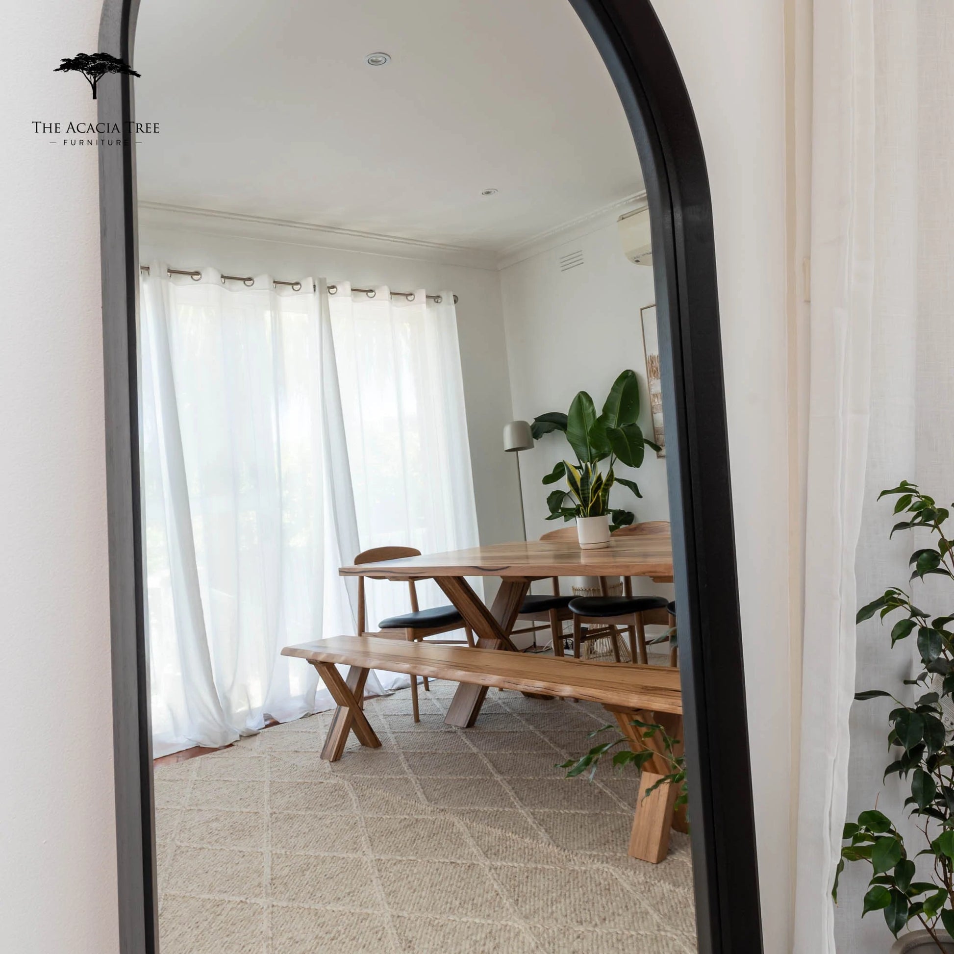 Elevate your space with the Ingrid Mirror, a full-length masterpiece crafted from high-quality Solid American Oak timber. Its elegant arch design adds a touch of sophistication, making it perfect as a leaner mirror against a wall or effortlessly hung with D-rings attached at the back. Choose from three exquisite colours—Black, Natural, or White—to seamlessly integrate this stylish and versatile mirror into your decor. Redefine your reflection with the Ingrid Mirror, where quality craftsmanship meets contemporary design in perfect harmony