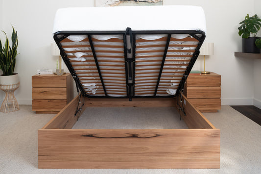 These timber bed frames are the perfect choice for your bedroom. Select from various  Australian-made timber bed frames, constructed with elegant hardwoods such as Victorian Ash, Tasmanian Oak, Mauri, and Messmate. Handmade in Australia by master craftsmen, there's nothing quite like these beds. We’re dedicated to sustainability, that's why with every furniture order placed, one tree will be planted in your honour.
