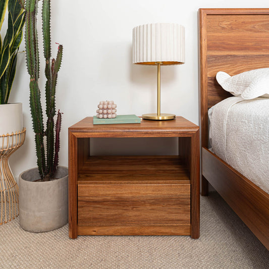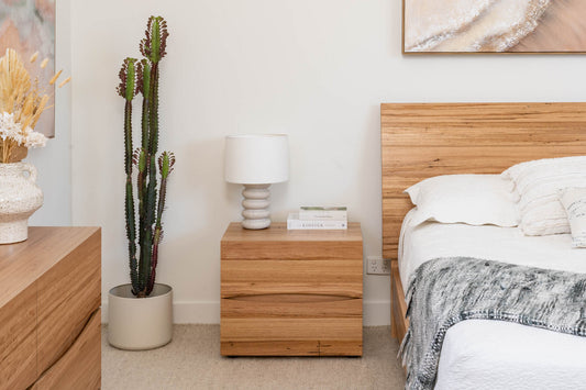 At The Acacia Tree, we design timber bedside cabinets to meet the diverse needs of every lifestyle. Whether you prefer extra drawers, shelving, or a specific timber stain from light to dark, we have a style to complement your bedroom. Our Australian-made timber bedside tables, crafted from high-quality hardwoods like Victorian Ash, Tasmanian Oak, Messmate and Amercian Oak hardwood, are not only beautiful but also sustainable. These wooden bedside tables not only serve as practical furniture pieces, they add a touch of sophistication to your room. Explore our gorgeous selection to find the perfect match for all your bedroom furniture needs and transform your space with our signature styles.