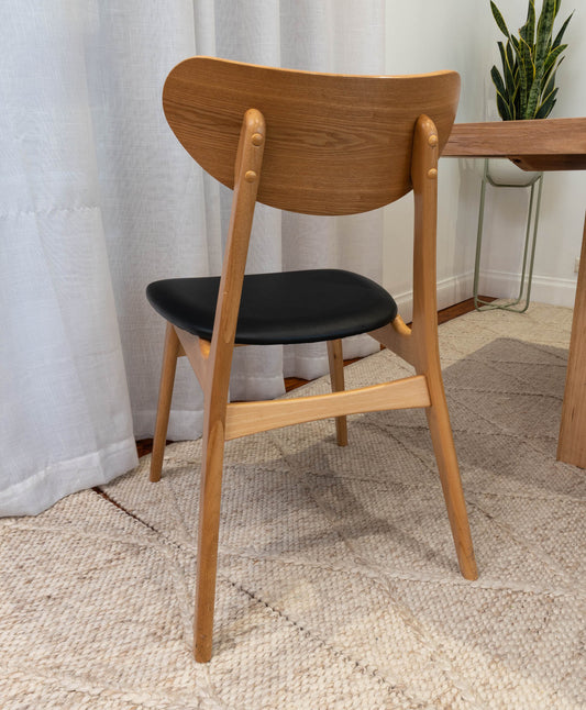 Lotus (Natural) Solid Blackbutt Dining Chair with Black PU Seat