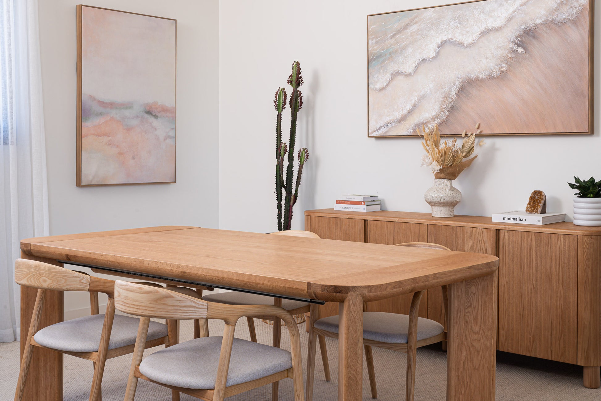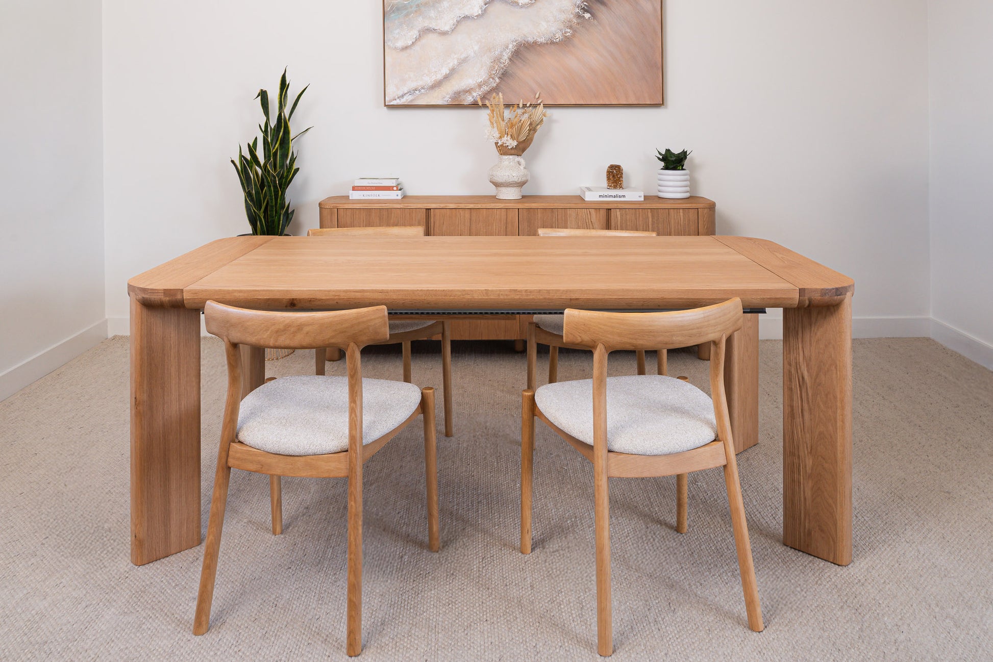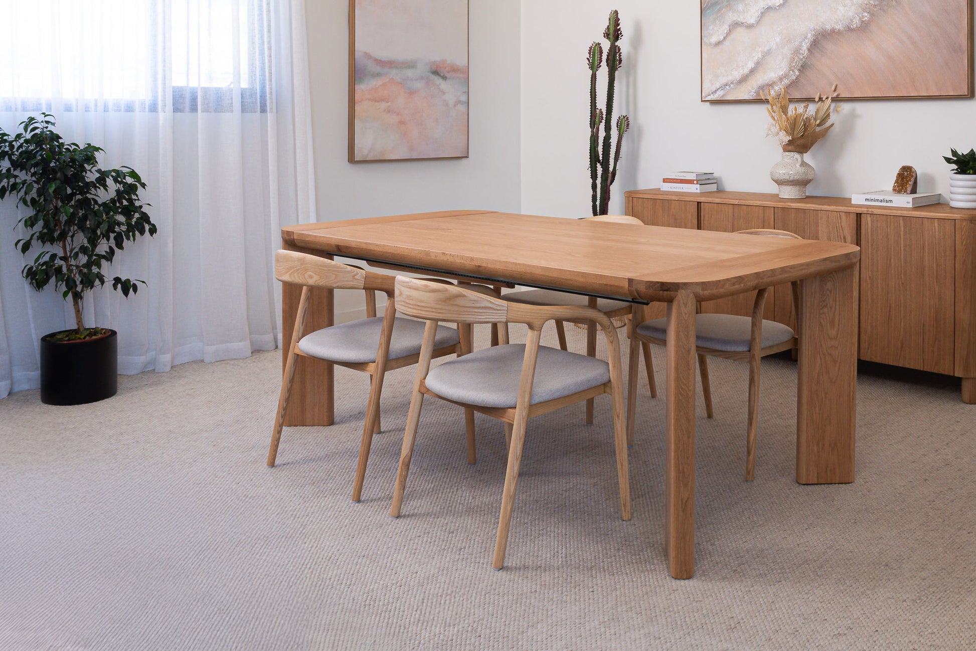 Discover the Juniper American Oak Dining Table, a premium imported design crafted from American Oak. Transform your dining space with the Juniper adjustable table. Solid oak legs, a sleek veneer top, and a smooth butterfly extension with an 80 cm hidden leaf offer style, versatility, and comfort in one elegant design.