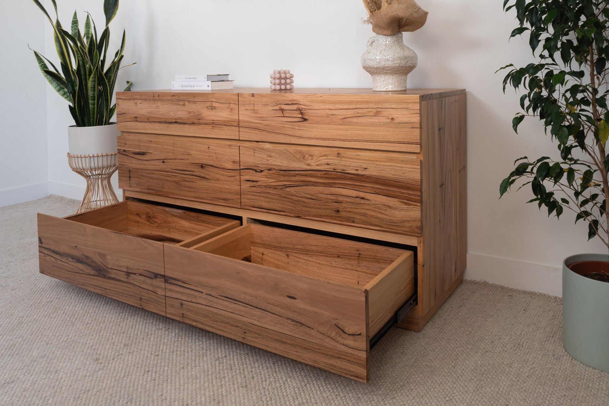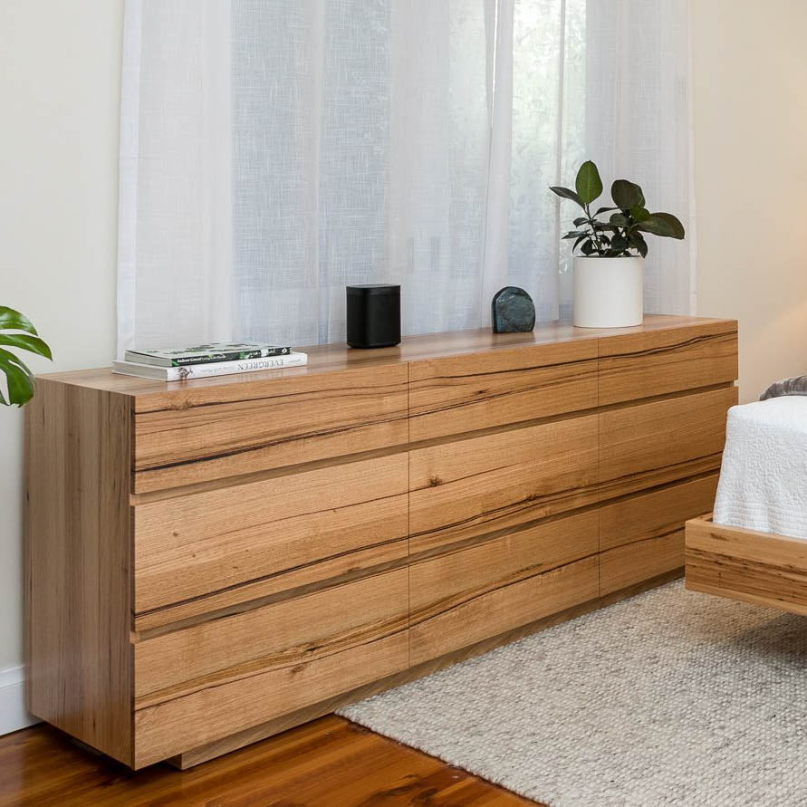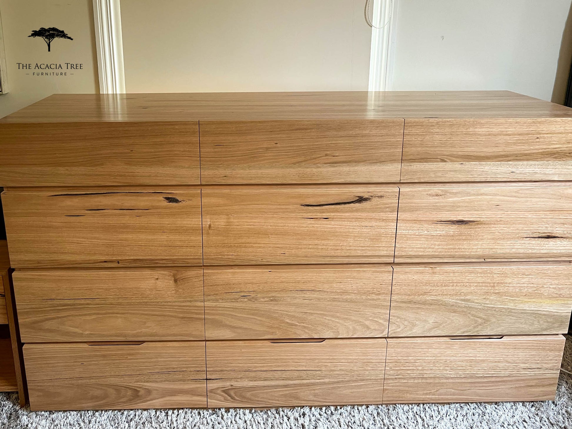 Indulge in luxury with our Custom Australian-Made Noosa Dresser Range. Crafted from the highest A+ Grade Australian Hardwood Timber, our dressers epitomise quality and elegance. Pictured in the exquisite Messmate, they are also available in other Australian timbers. Elevate your space with the timeless beauty and craftsmanship of the Noosa Dresser Range, where hand made meets Australian excellence.