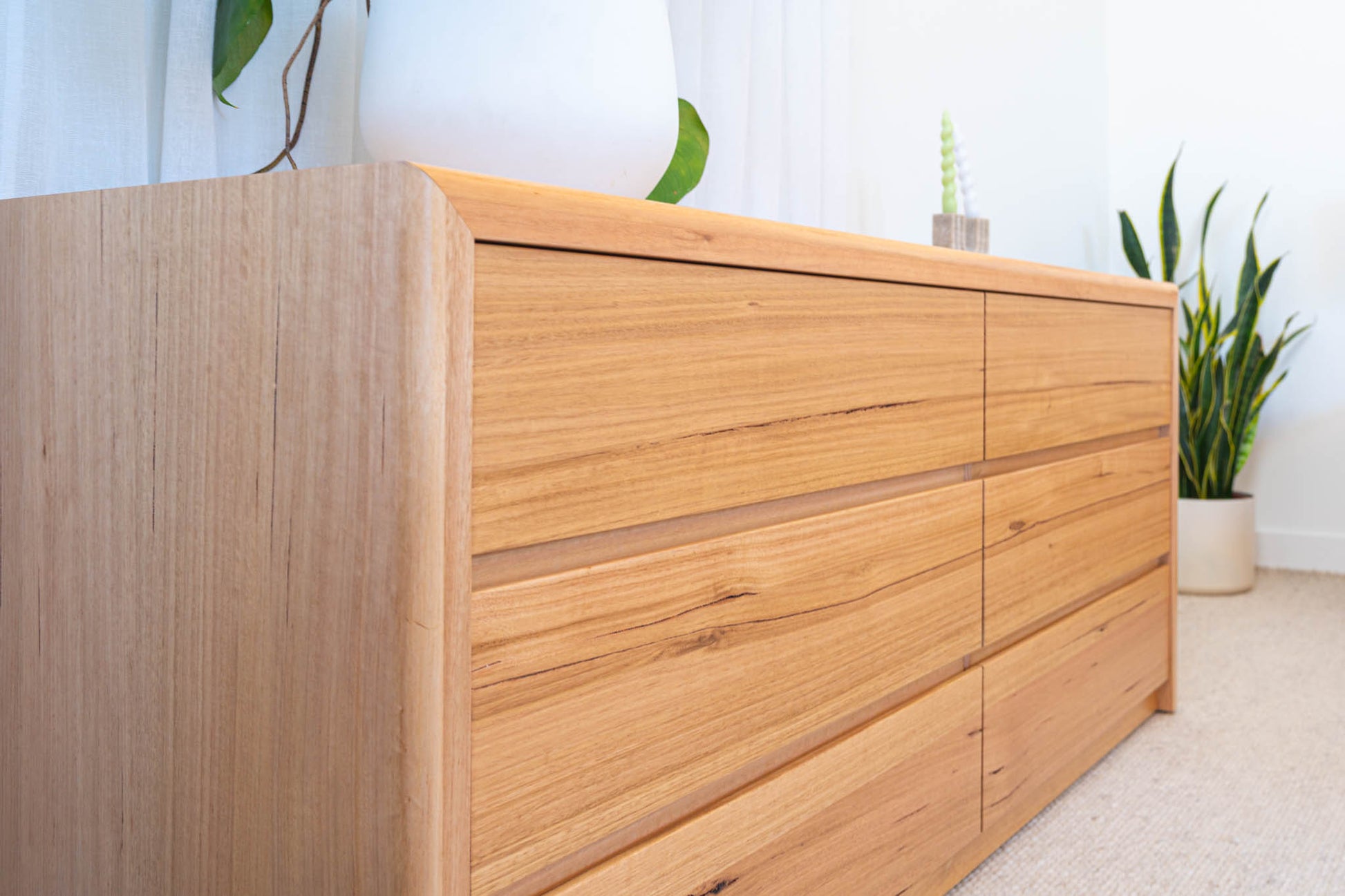 Discover the timeless charm of our Australian-made Yakka dresser, expertly handcrafted from solid feature-grade Tasmanian Oak. Designed with soft, rounded edges, this six-drawer piece brings a warm, natural feel to any bedroom. With six beautiful stain options available, you can customise the Yakka to suit your personal style and interior aesthetic. A true testament to Australian craftsmanship, the Yakka dresser is the perfect blend of quality, character, and enduring elegance.