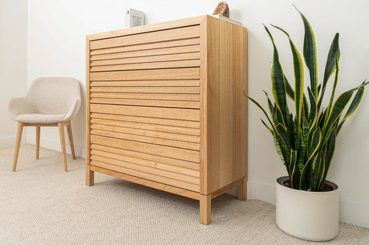 Sustainability is at the forefront of our agenda. That's why we use timber from sustainable sources such as plantation forests and recycled timbers. Our solid timber tallboys are created from quality Victorian Ash, Tasmanian Oak, Mauri, and Messmate. We are confident that our Australian-made products are both environmentally friendly and built to last. Every Australian-made furniture purchase equates to one newly planted tree, to replenish our earth.
