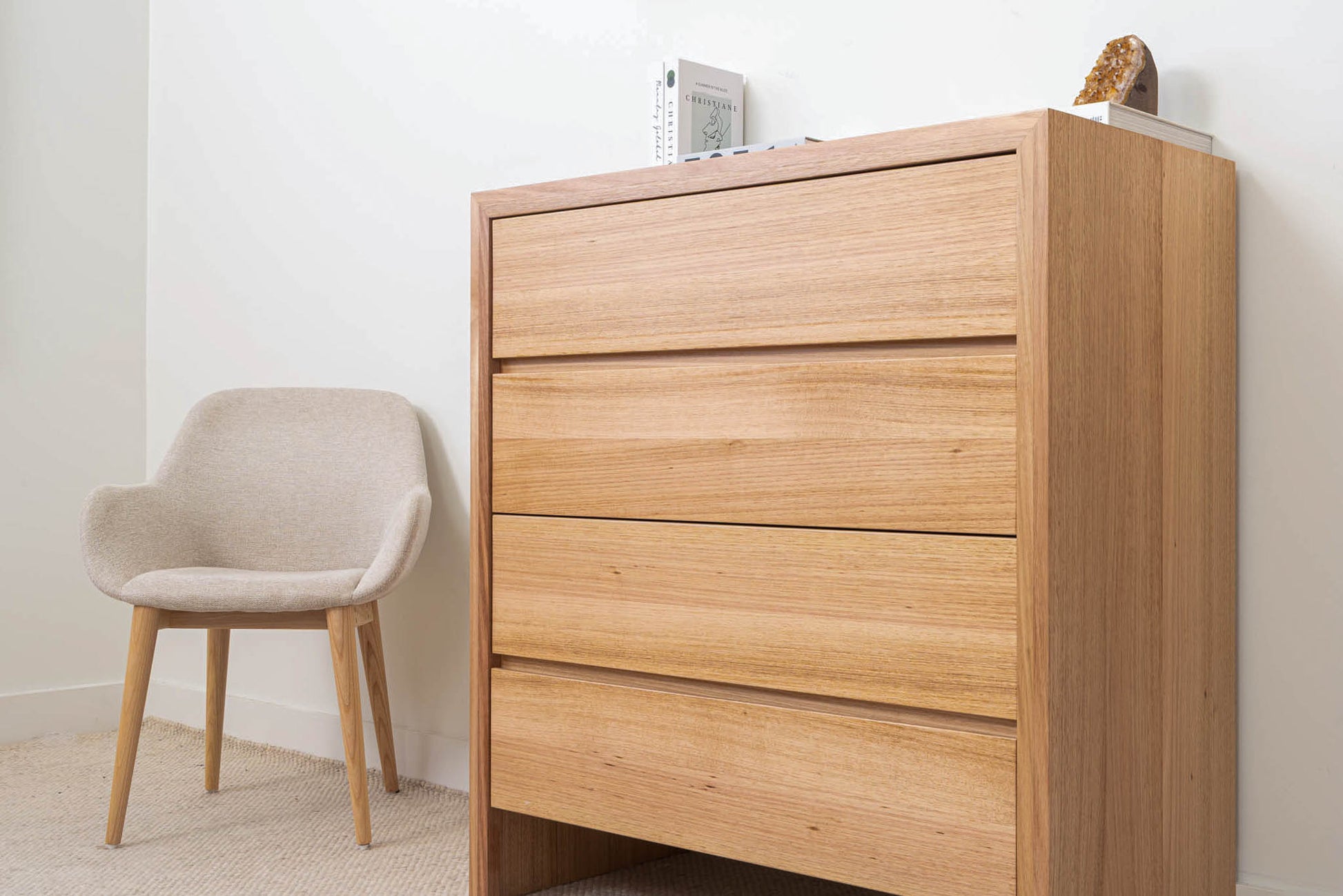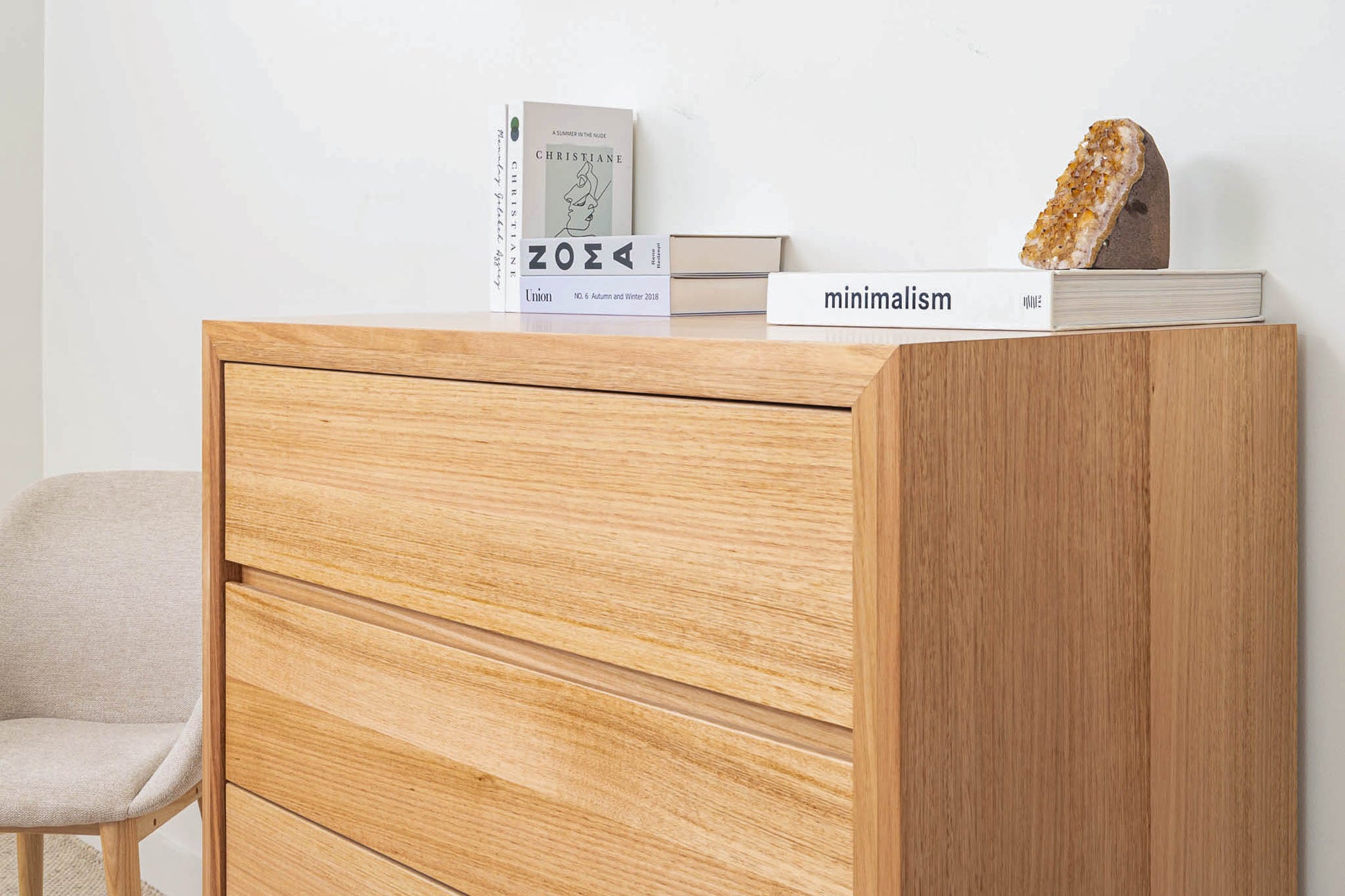 Experience the timeless beauty and quality of our Australian-Made Zion Tallboy, meticulously handcrafted from solid Tasmanian Oak. With six stunning stain options to choose from, you can tailor this classic piece to match your personal style and home decor. Get this in your home in as little as 5-7 weeks. Elevate your bedroom space with the enduring elegance of the Zion Tallboy, a true masterpiece of Australian craftsmanship.