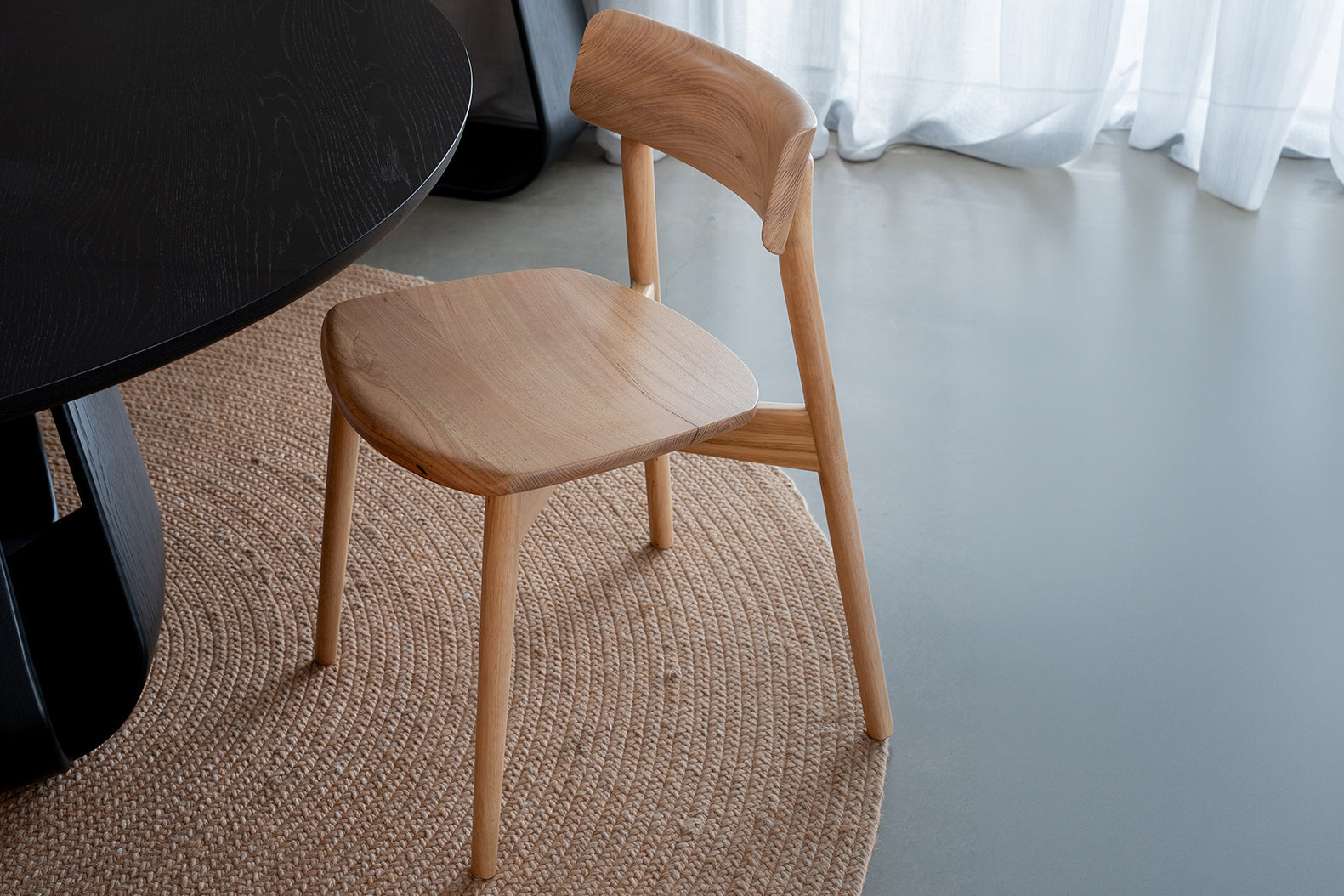 Introducing the Runa Messmate Dining Chair. Crafted from solid Messmate timber, Runa features a gently curved backrest and sculpted seat for everyday comfort. Showcasing natural grain and warm tones, Messmate offers a versatile, timeless look suited to both modern and classic dining spaces.